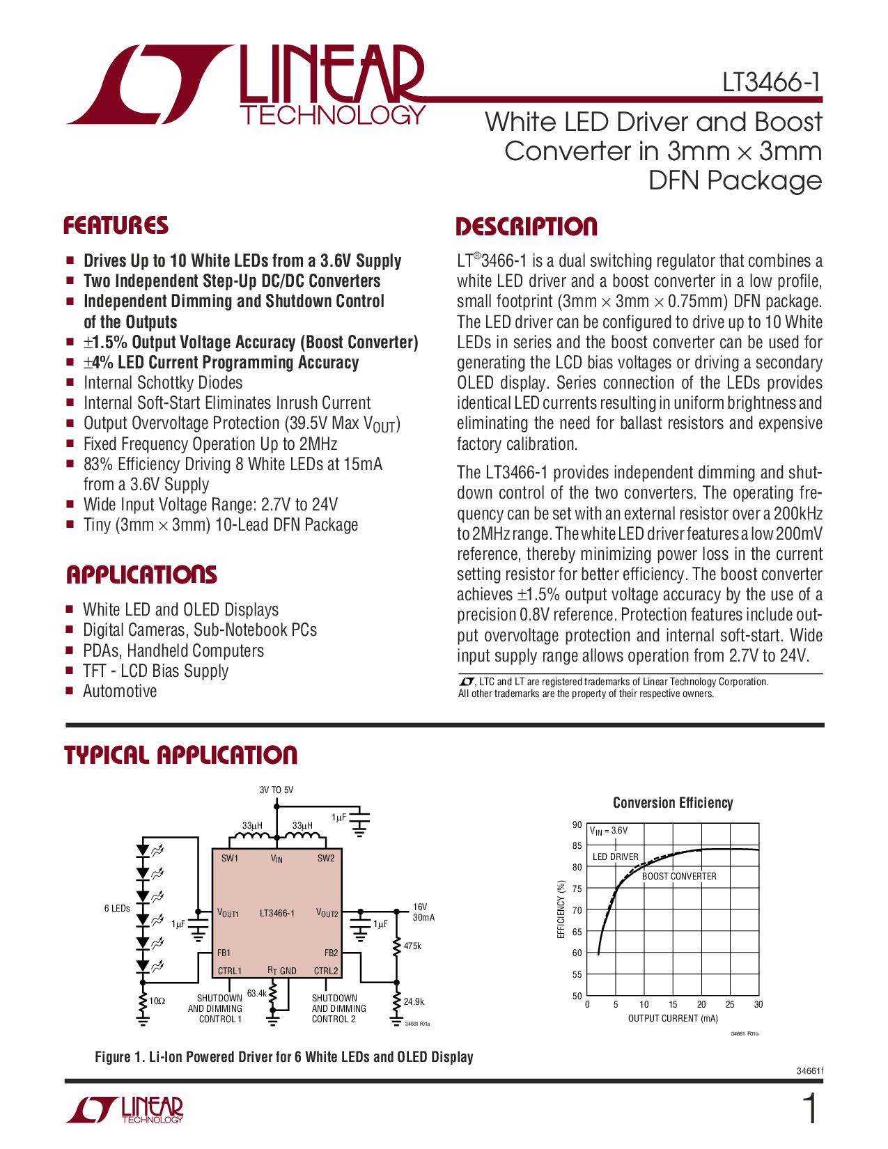 这 lt3466-1 提供 独立 调光 和 关闭-