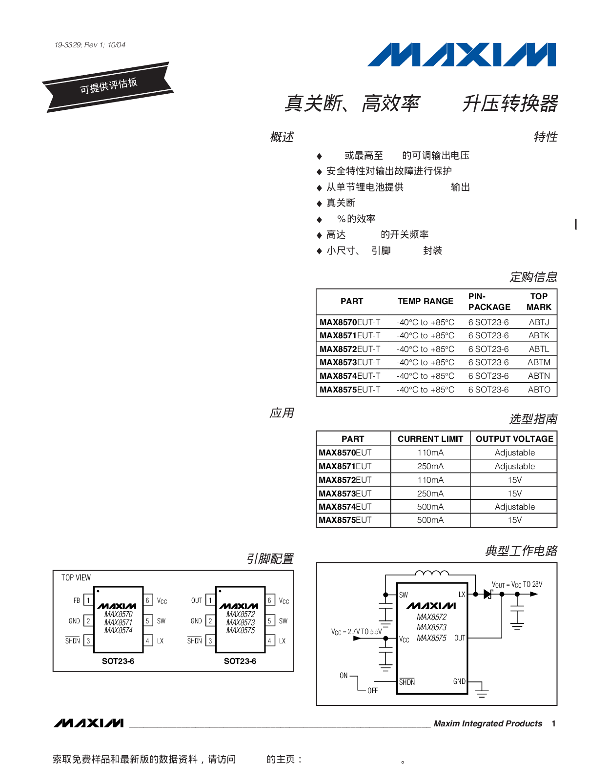 索取免费样品和最新版的数据资料,请访问马克西姆的主页:www.马克西姆-集成电路.com.cn。