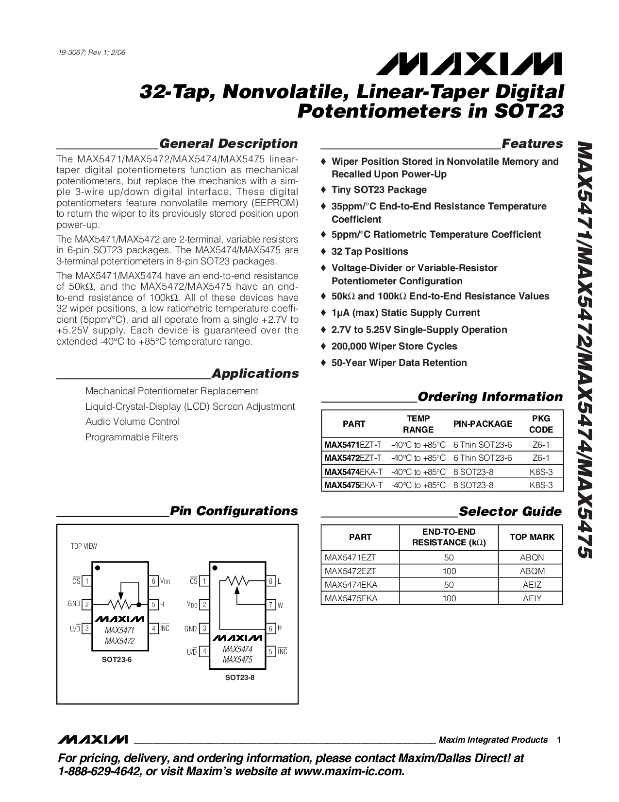 入点 6-管脚 sot23 软件包. 这 max5474/max5475 是