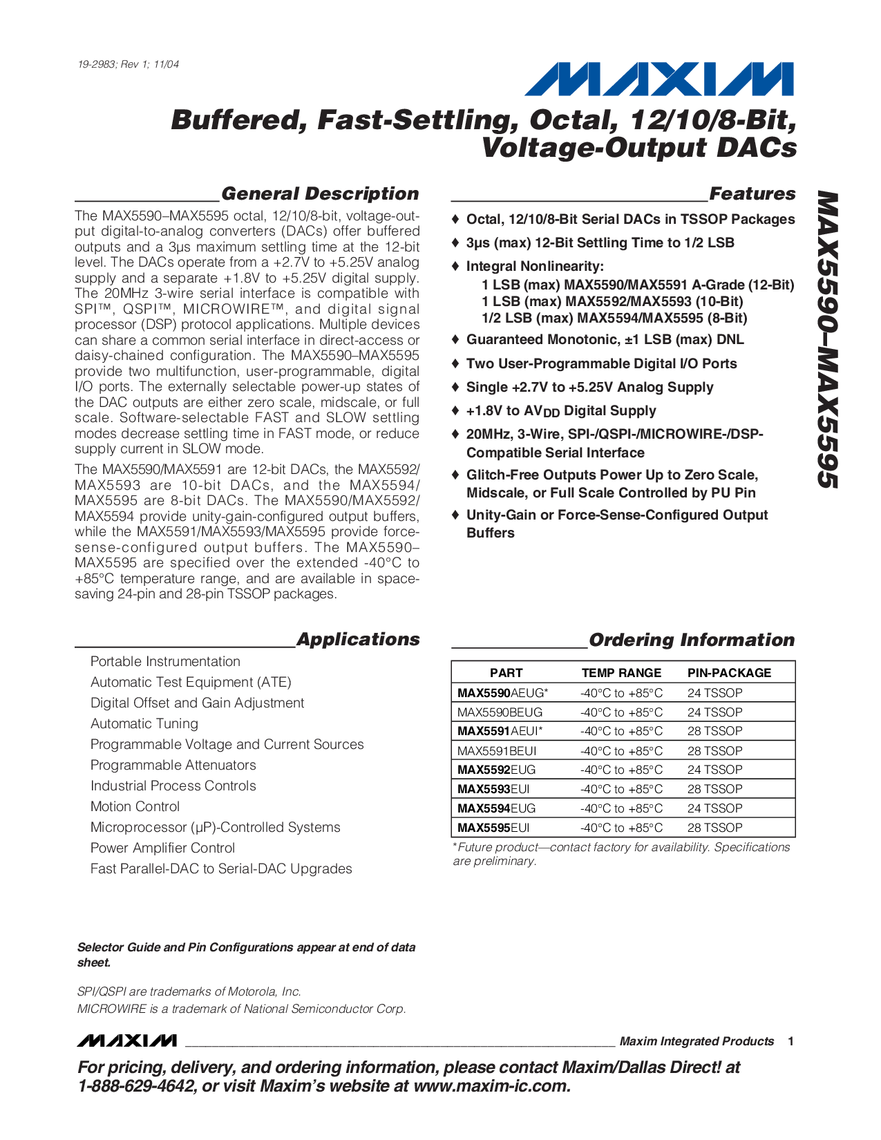 max5595 是 8-有点 dacs. 这 max5590/max5592/