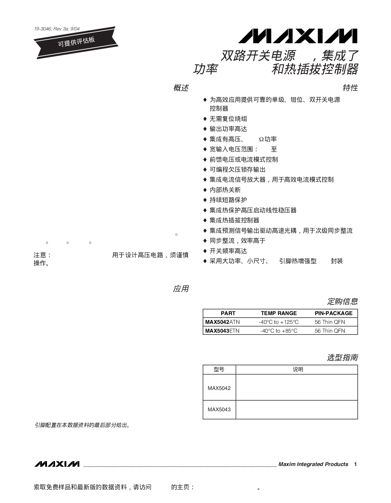 注意:max5042/max5043用于设计高压电路,须谨慎