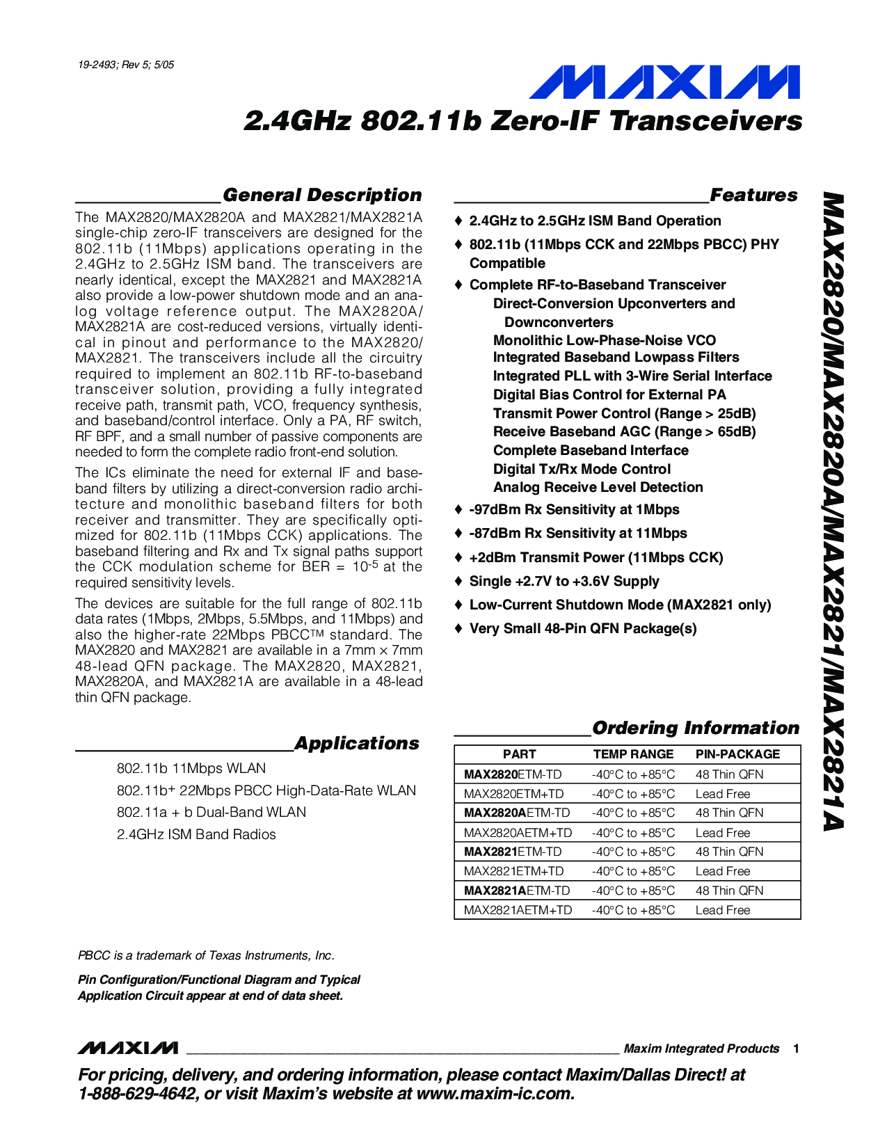 max2820a, 和 max2821a 是 可用 入点 一个 48-铅