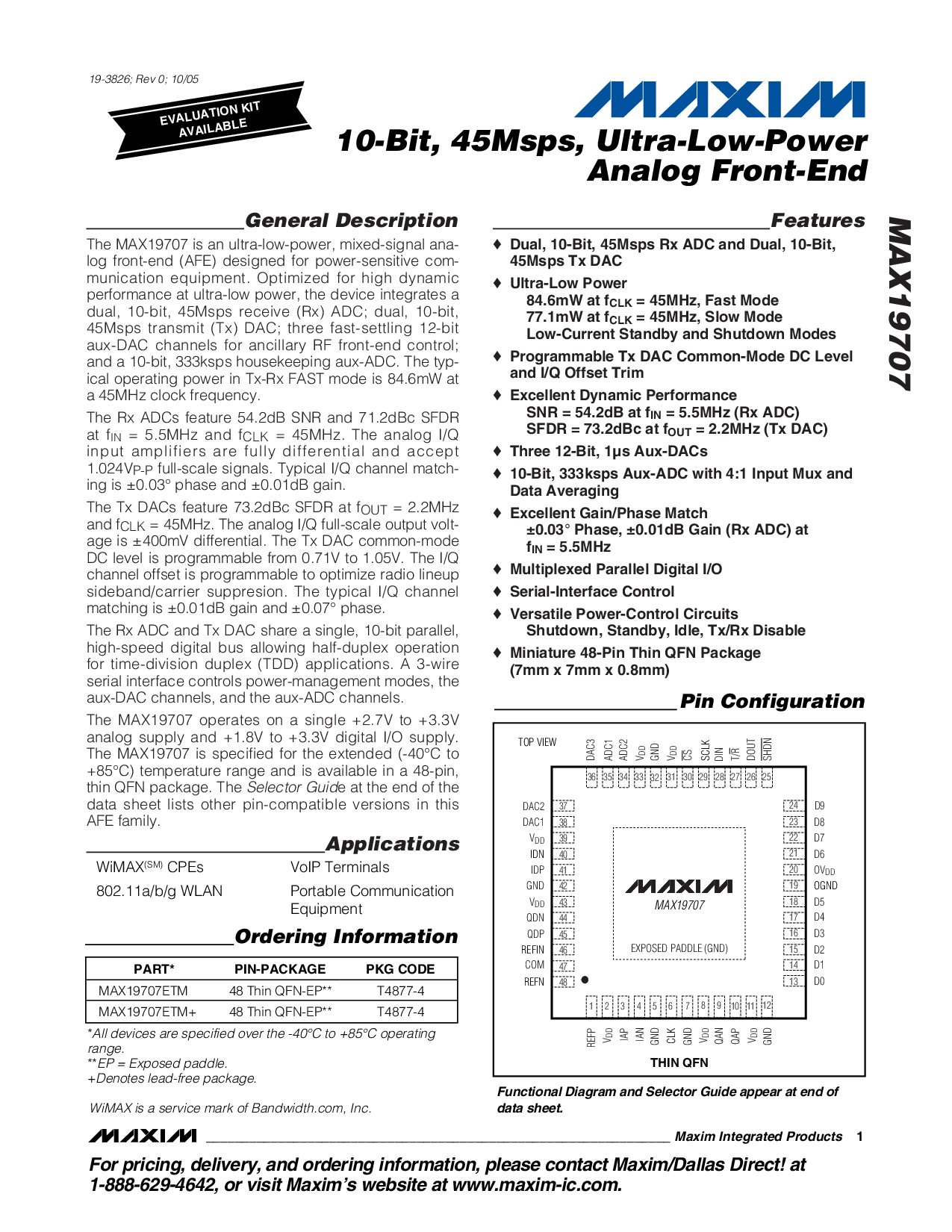 MAX19707ETM 48 薄 qfn-ep** t4877-4