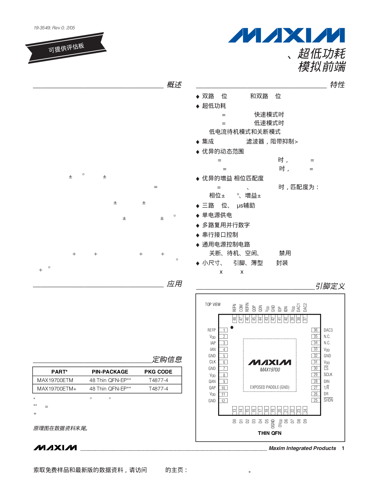 MAX19700是超低功耗、混合信号模拟前端 (afe),设计