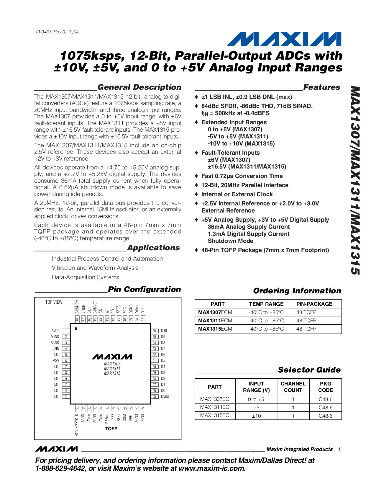 这 max1307/max1311/max1315 12-有点, 模拟-至-数字-