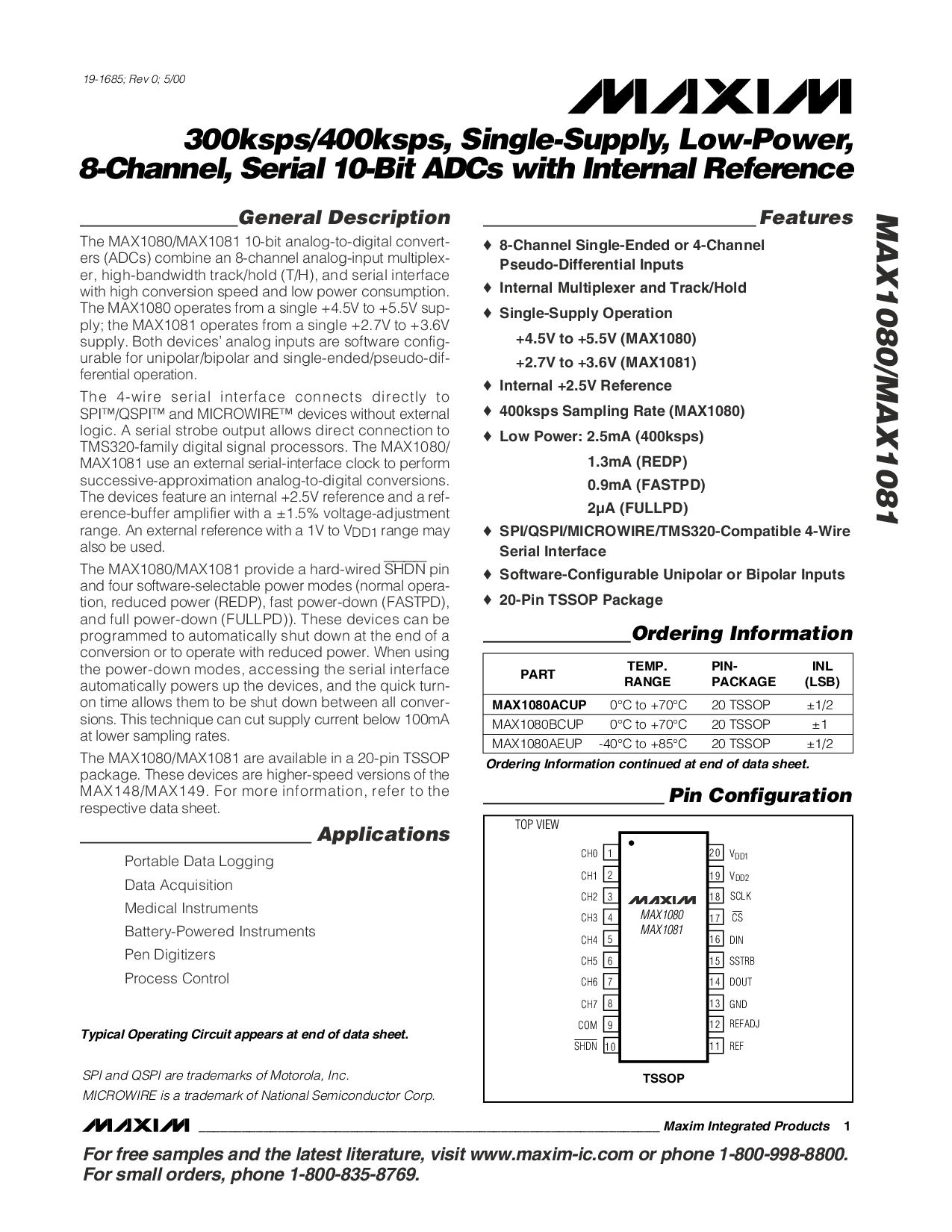 用于 免费 样品 和 这 最新 文学, 参观 www.马克西姆-集成电路.com 或 电话 1-800-998-8800.