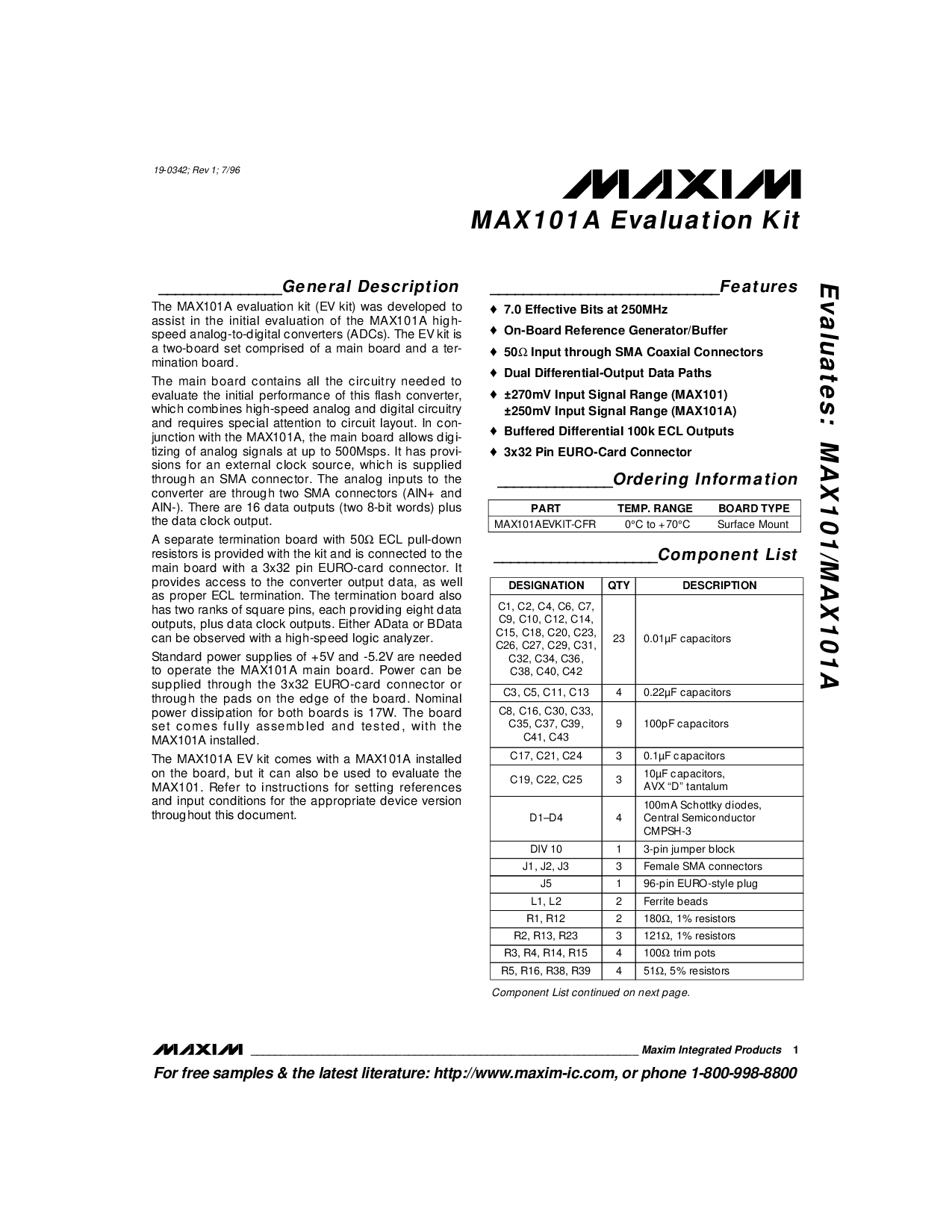 用于 免费 样品 &放大器; 这 最新 文学: http://www.马克西姆-集成电路.com, 或 电话 1-800-998-8800