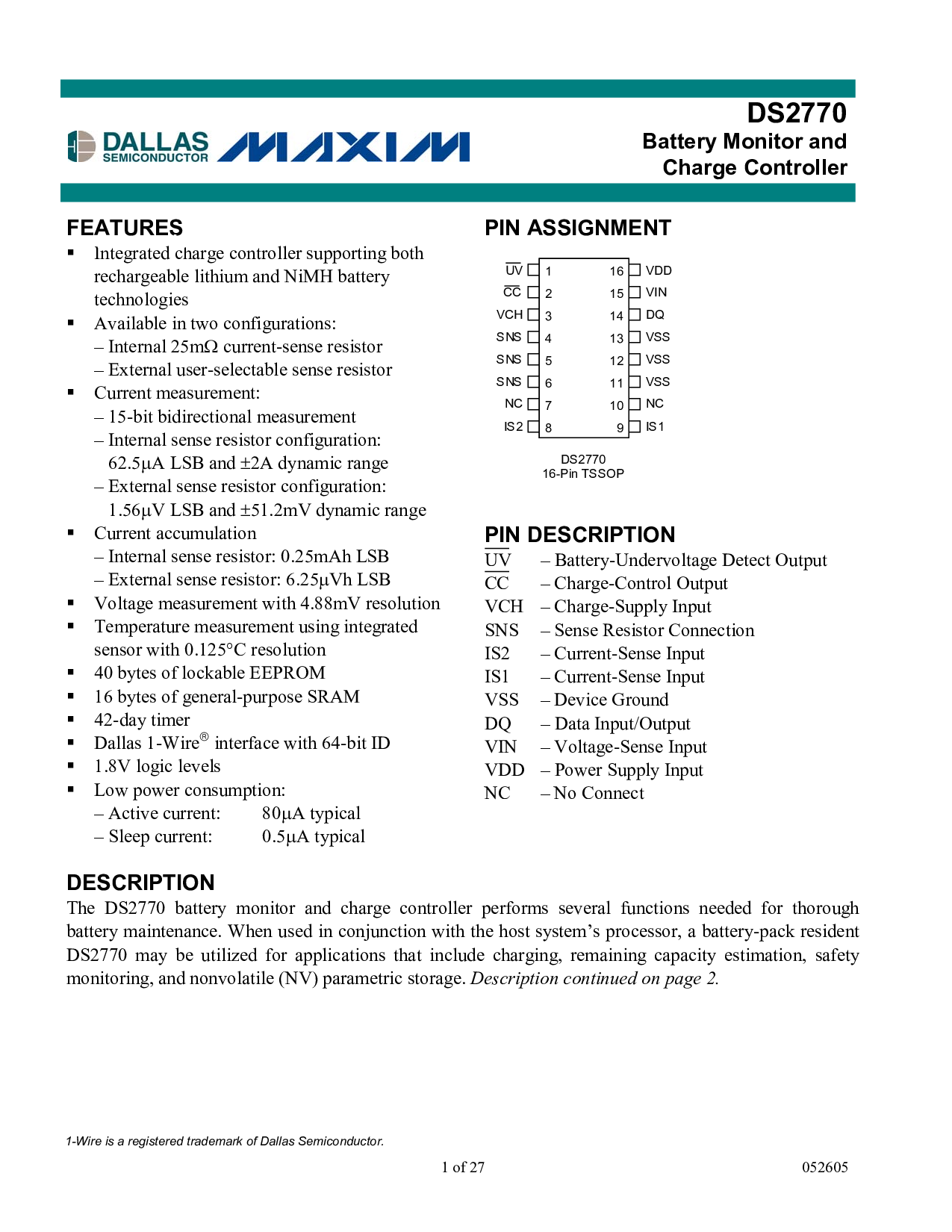 1-电线 是 一个 已注册 商标 的 达拉斯市 半导体.