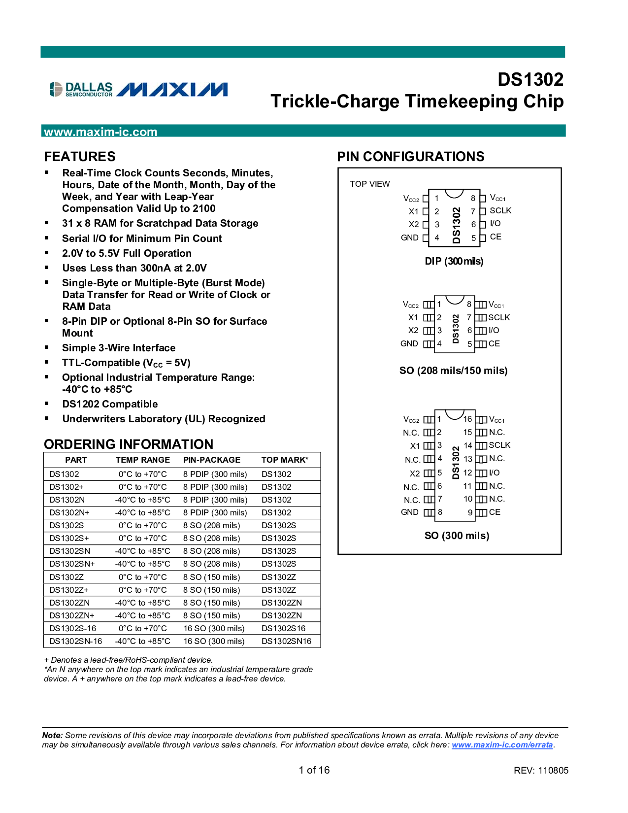 浏览型号DS1302Z的Datasheet PDF文件第2页