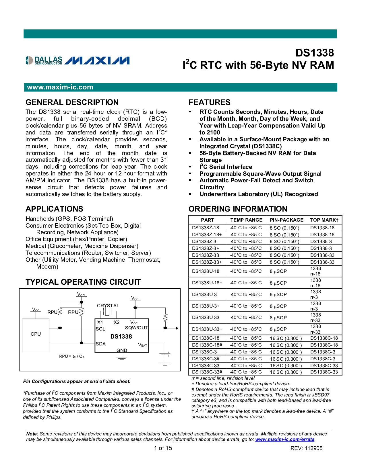 这 ds1338 串行 实时 时钟 (rtc) 是 一个 低-