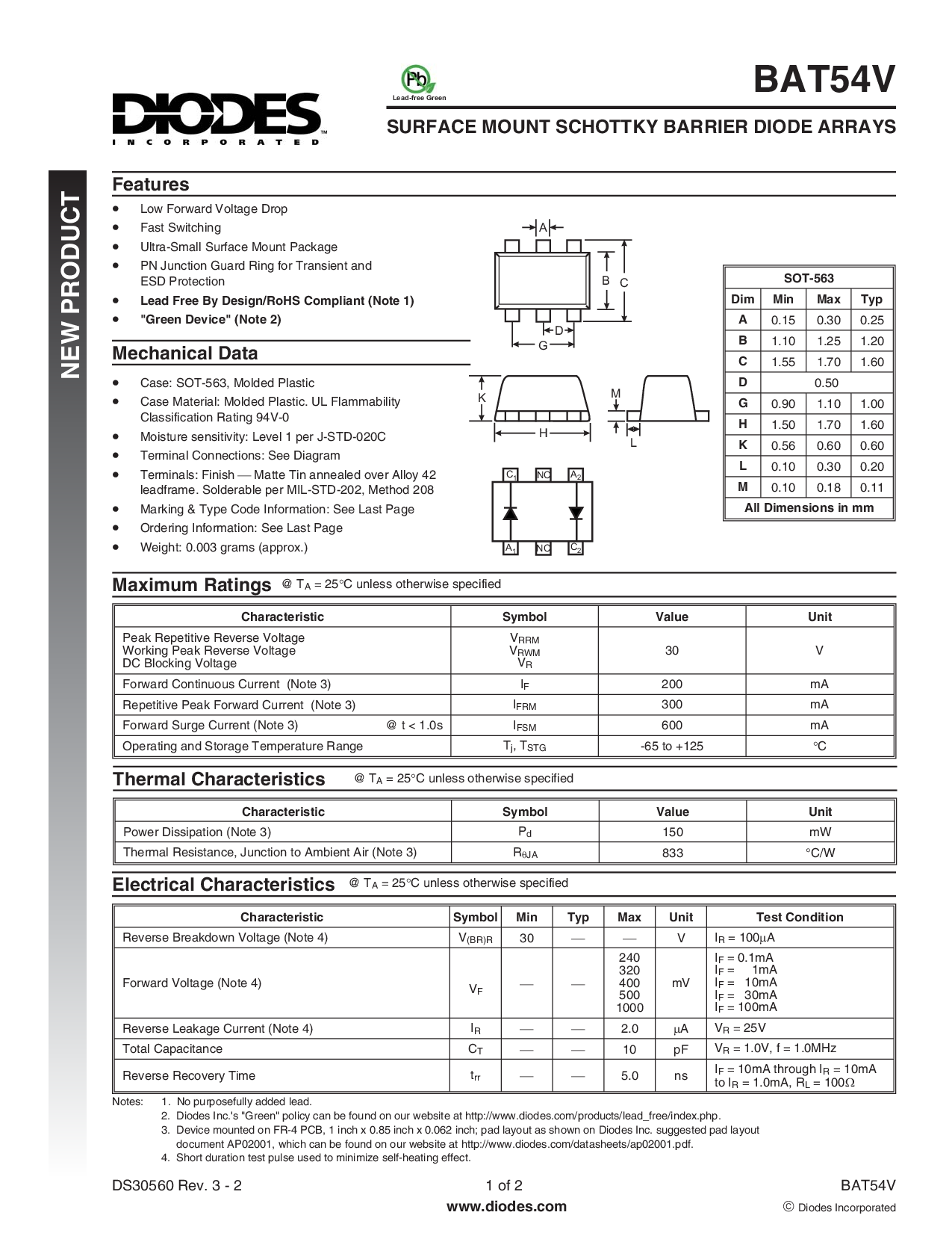 ds30560 rev. 3 - 2 1 的 2 BAT54V