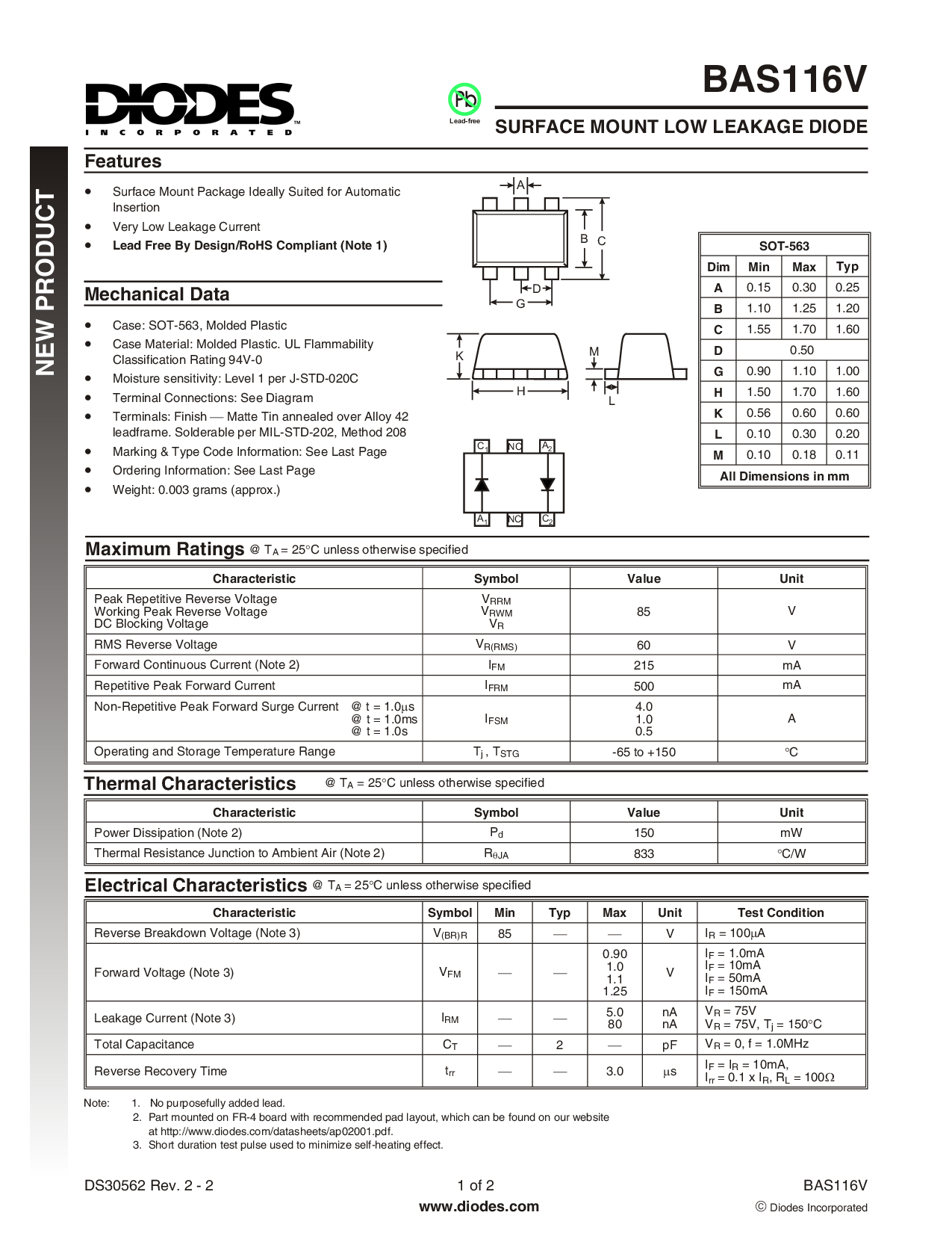 ds30562 rev. 2 - 2 1 的 2 BAS116V