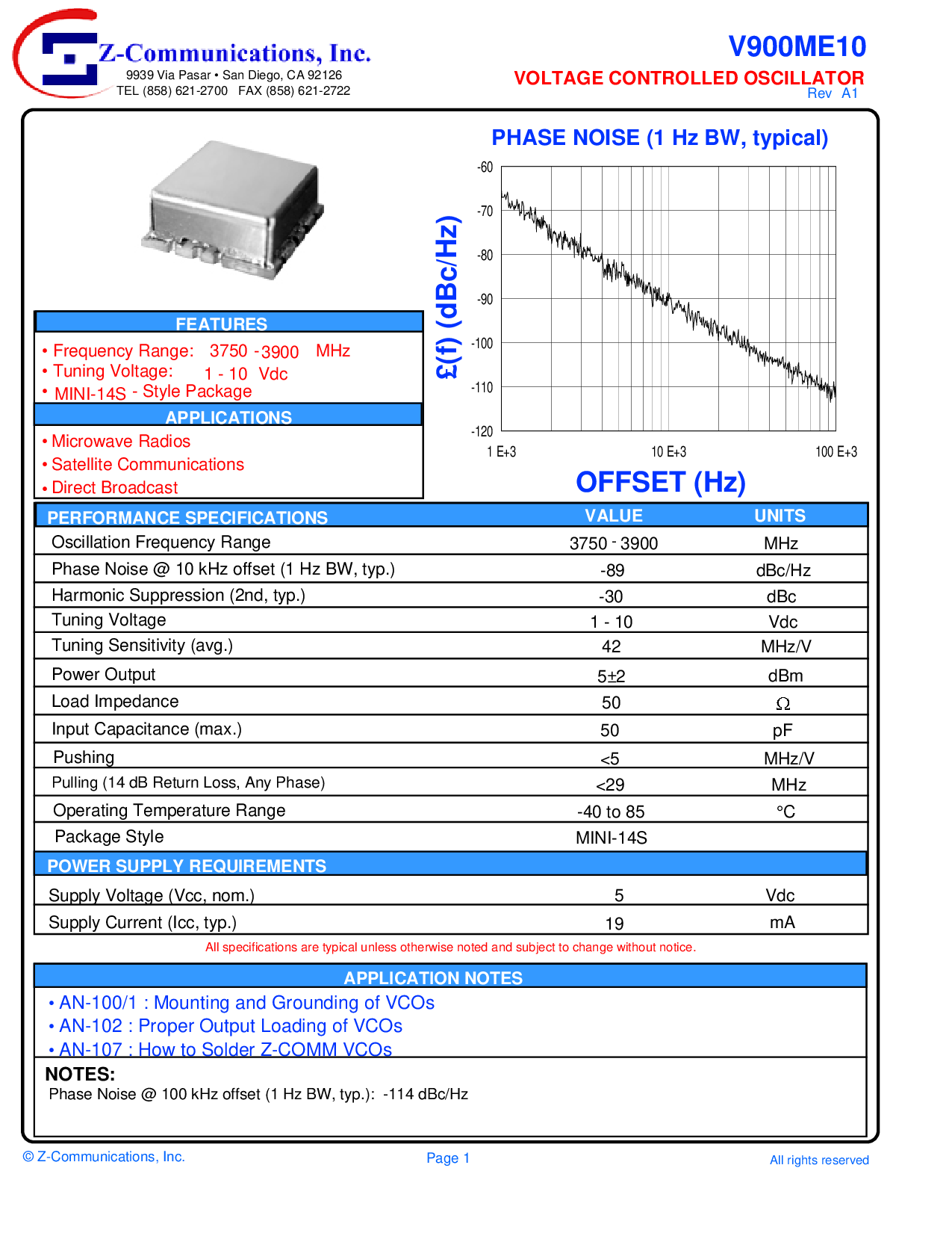 相位 噪声 @ 100 khz 偏移量 (1赫兹 bw, 典型值.): -114 dbc/赫兹