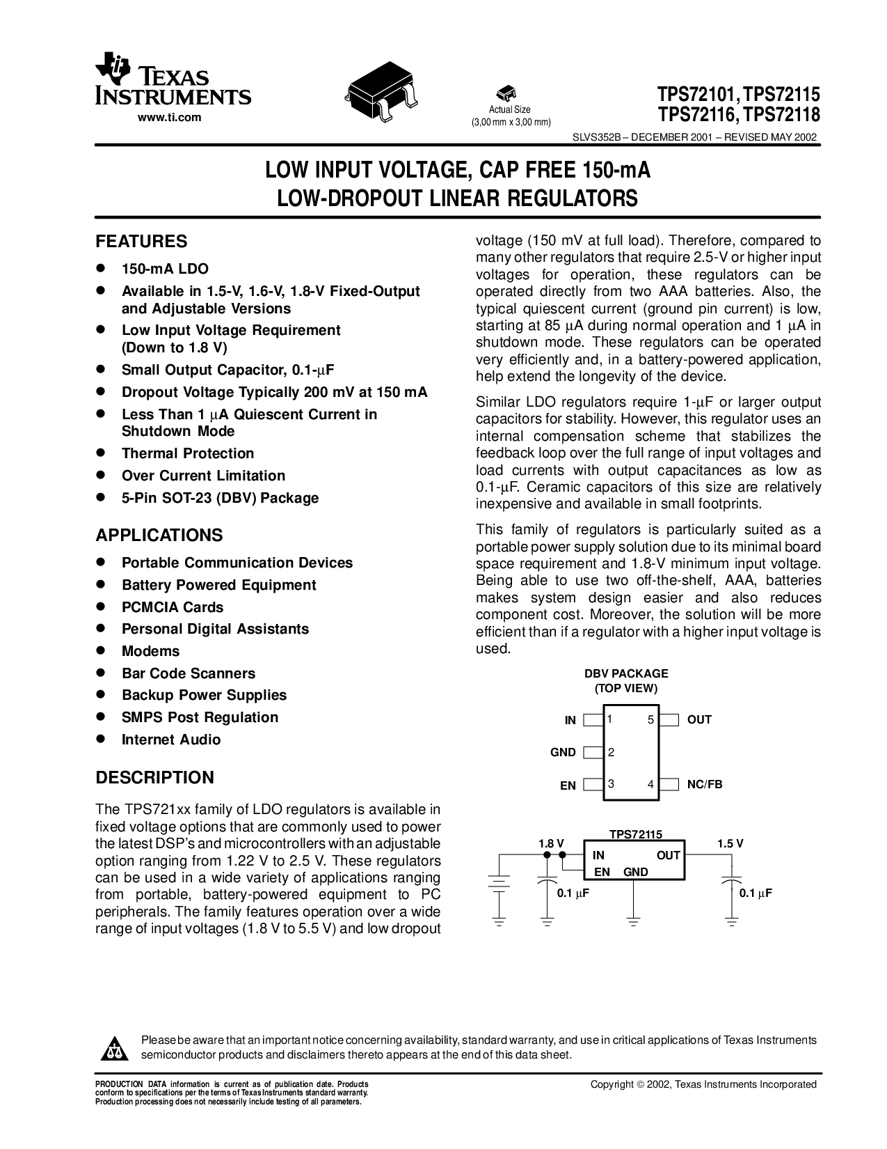 浏览型号TPS72116的Datasheet PDF文件第2页