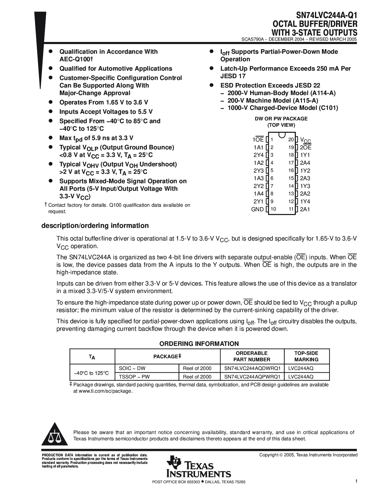 soic − dw 卷轴 的 2000 SN74LVC244AQDWRQ1 LVC244AQ