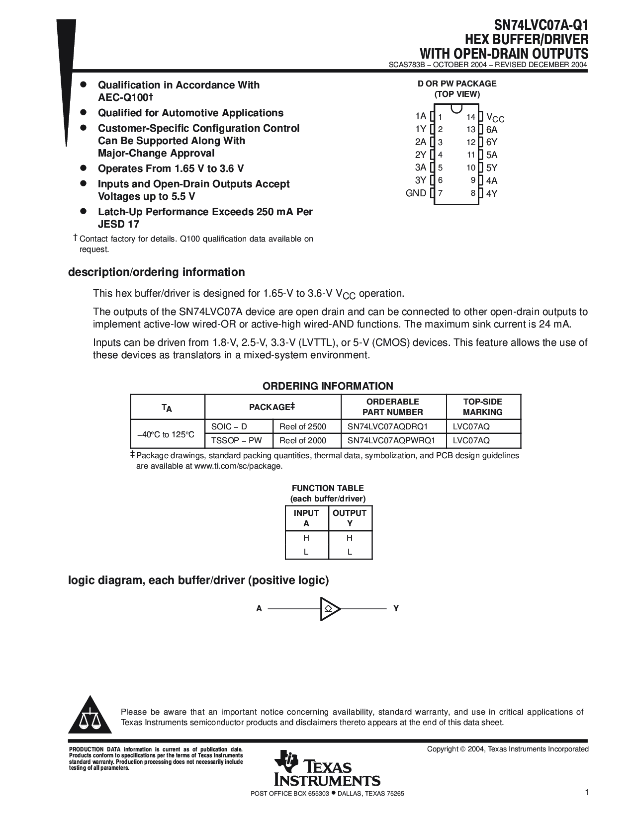 soic − d 卷轴 的 2500 SN74LVC07AQDRQ1 LVC07AQ