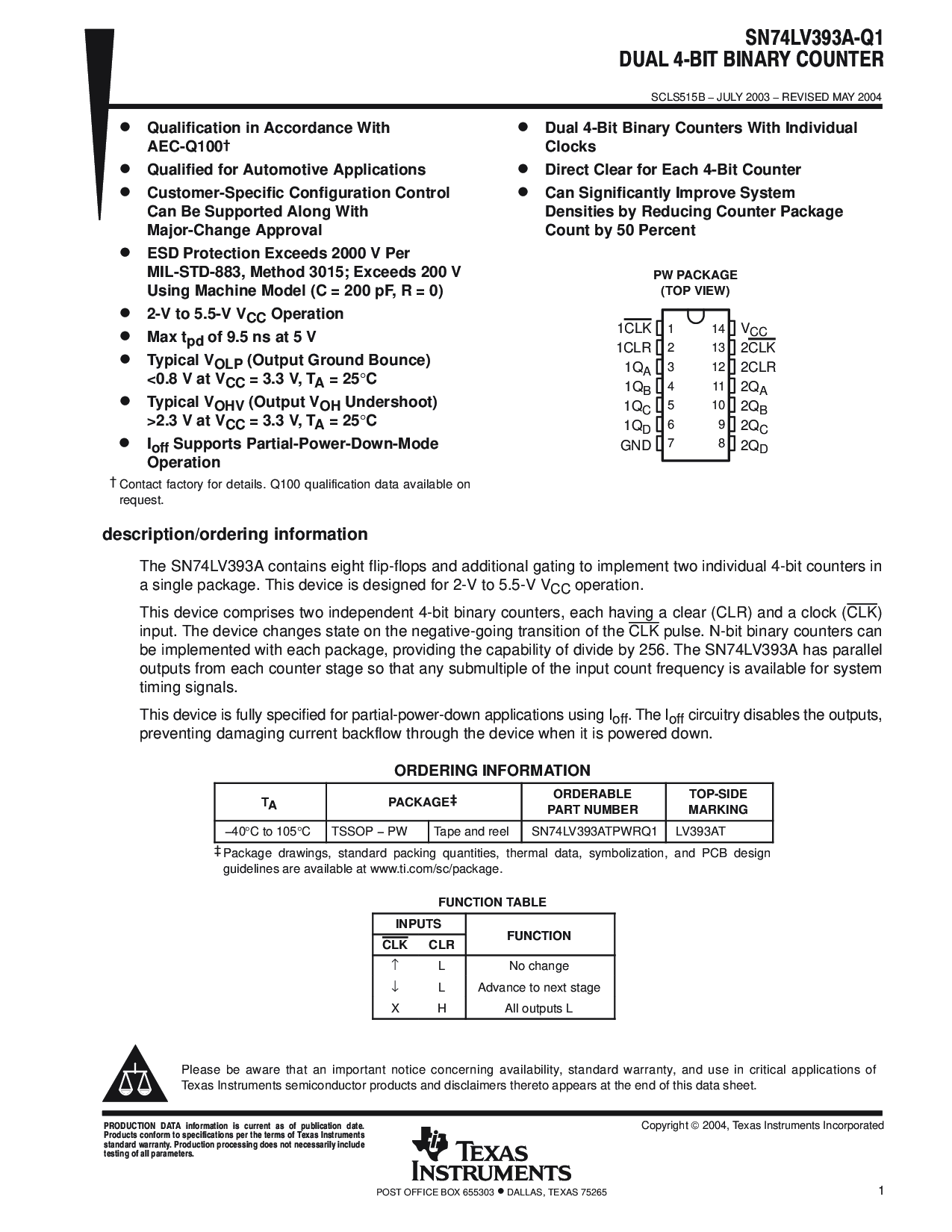 这 sn74lv393a 包含 八 人字拖 和 附加 浇口 至 实施 两个 个人 4-有点 计数器 入点
