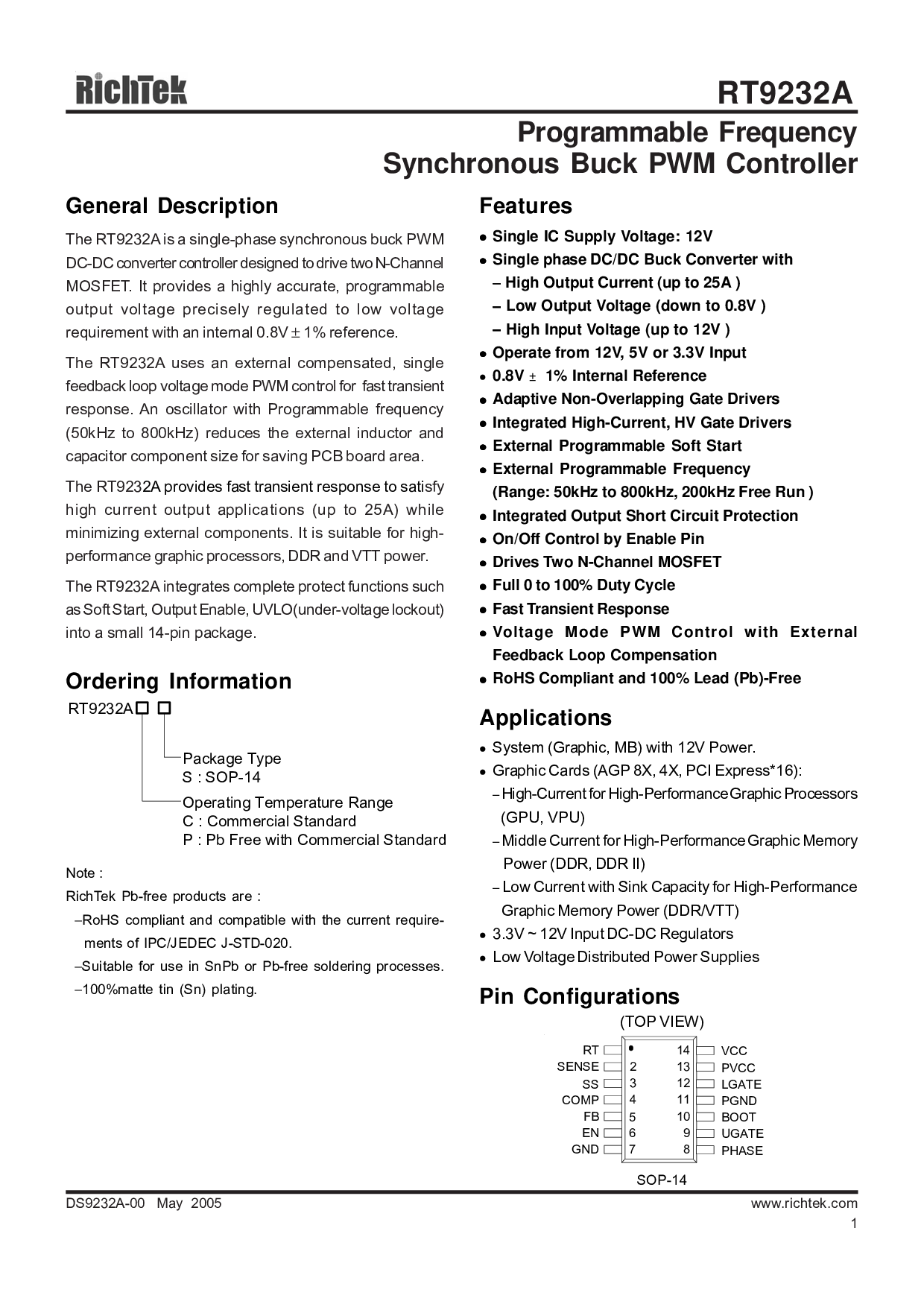这 rt9232a 是 一个 单相 同步 降压 pwm