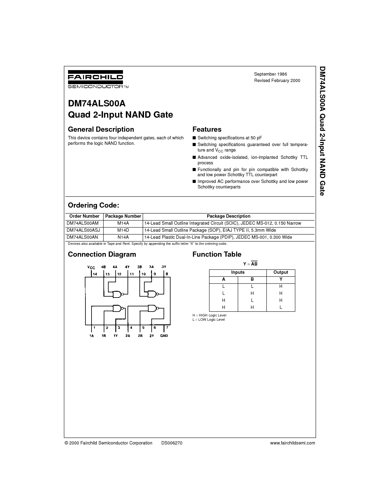 DM74ALS00AM M14A 14-铅 小 大纲 综合 电路 (soic), 电子元件工业联合会 ms-012, 0.150 窄