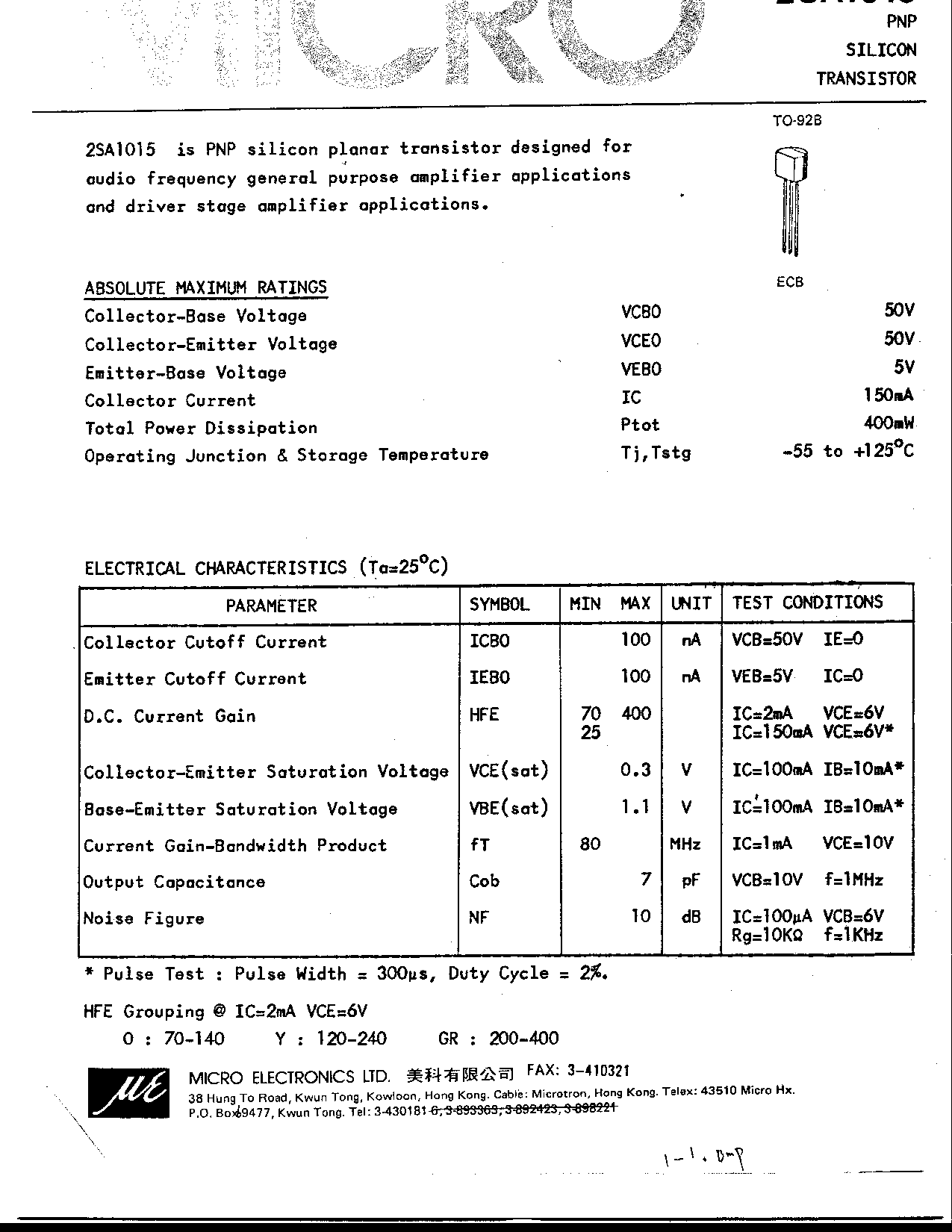 PNP EPITAXIAL PLANAR TRANSISTOR