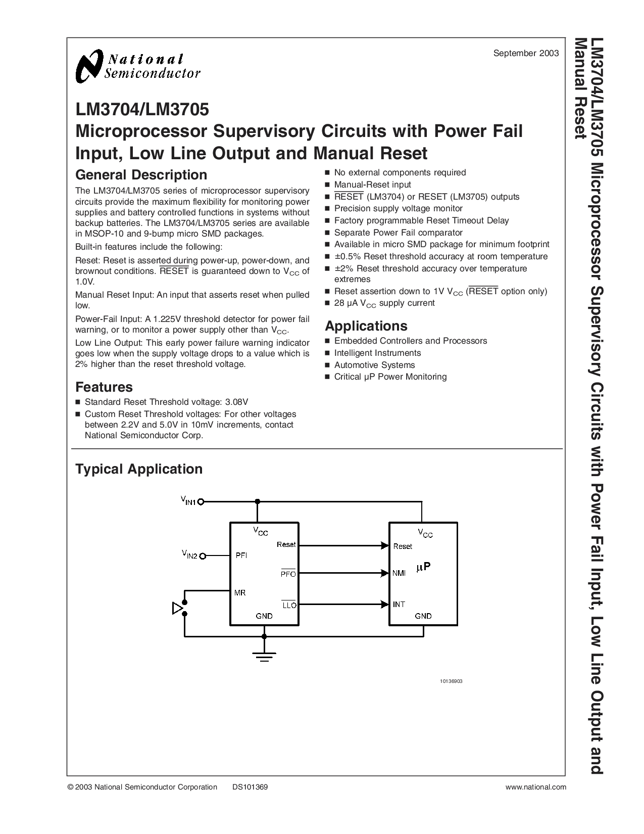 lm3704/lm3705 微处理器 监督 电路 与 电源 失败 输入, 低 线 输出 和