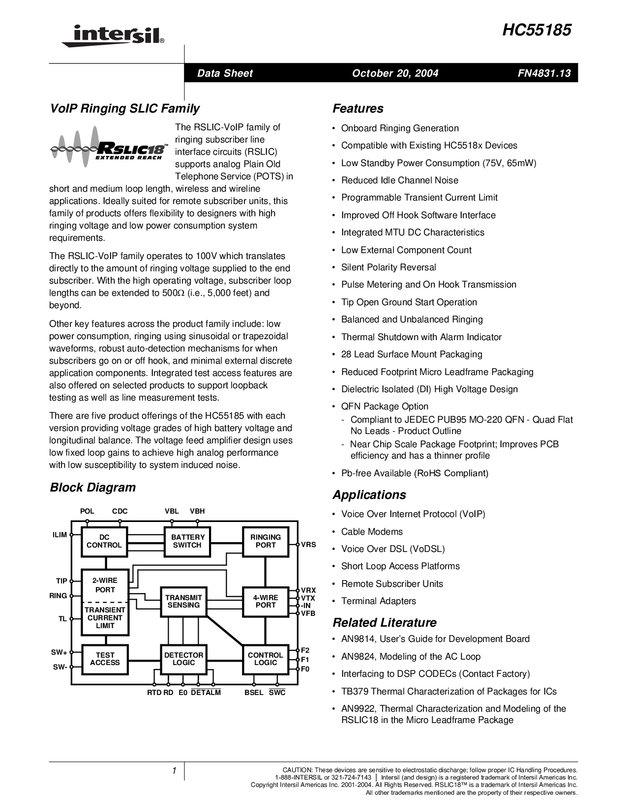 版权 intersil 美洲 公司 2001-2004. 全部 权利 保留ed. rslic18™ 是 一个 商标 的 intersil 美洲 公司