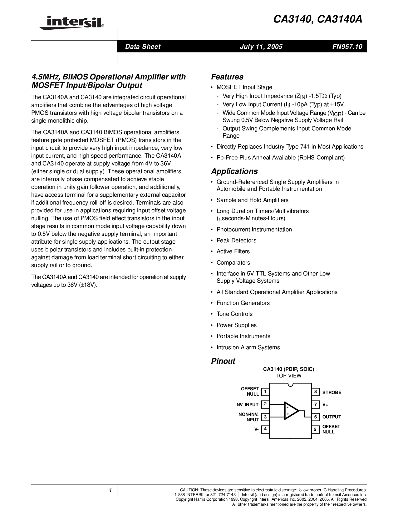 版权 harris 公司 1998, 版权 intersil 美洲 公司 2002, 2004, 2005. 全部 权利 保留
