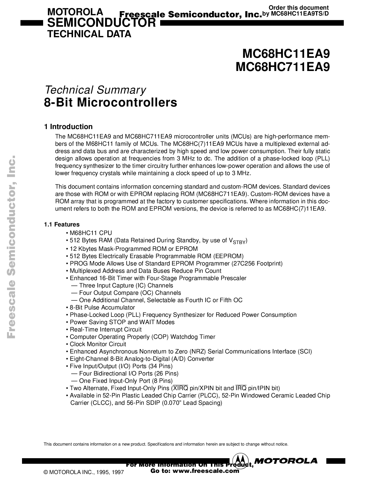 这 mc68hc11ea9 和 mc68hc711ea9 微控制器 单位 (mcus) 是 高性能 mem-