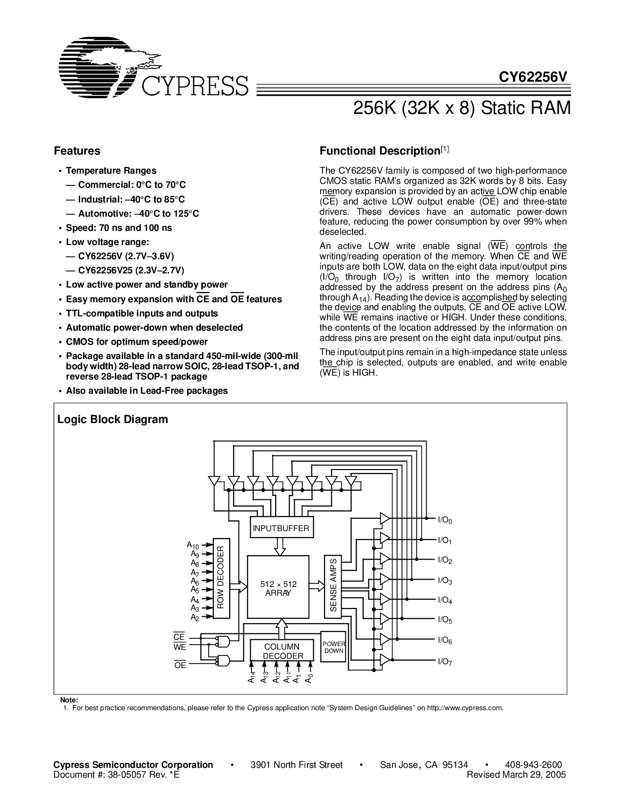 文件 #: 38-05057 rev. *e 修订 march 29, 2005