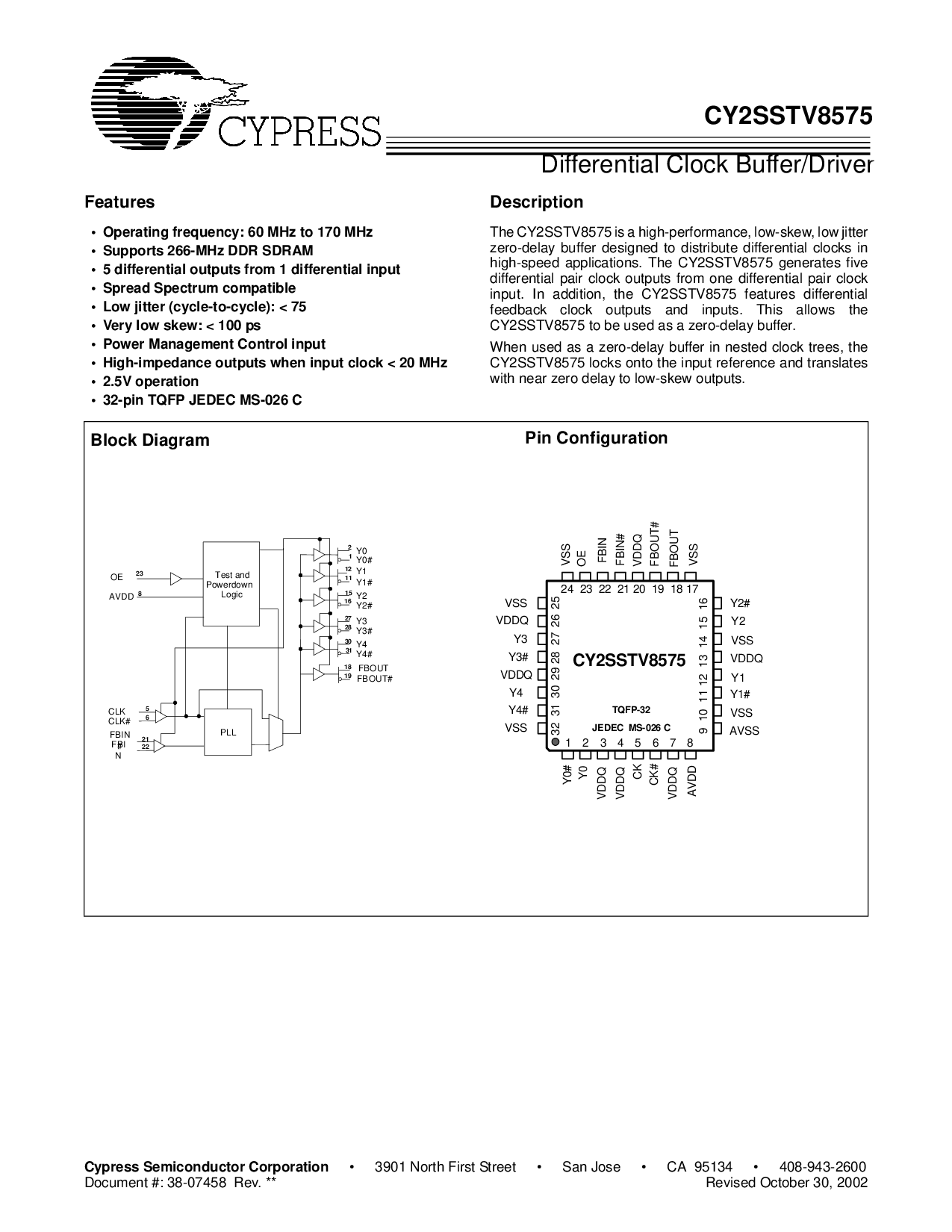 cy2sstv8575 至 是 已使用 作为 一个 零-延迟 缓冲区.
