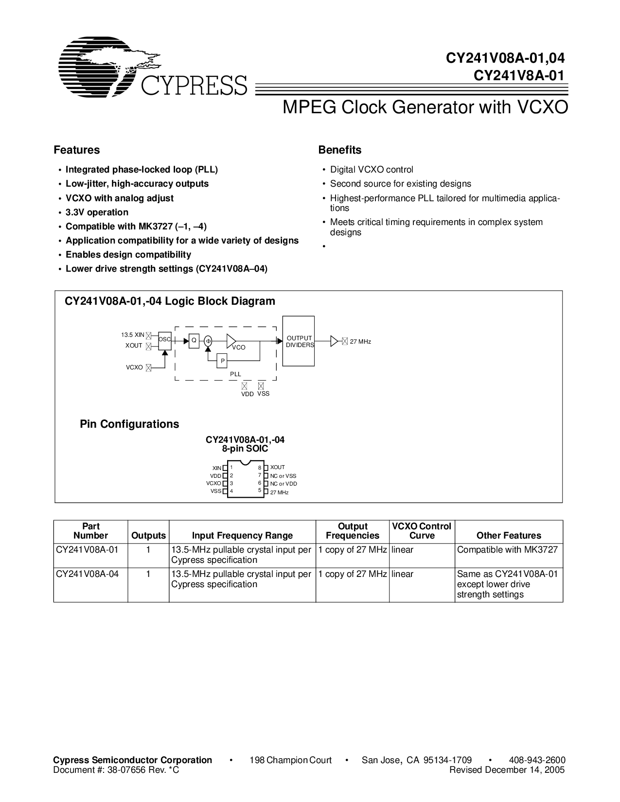 cy241v08a-01 1 13.5-mhz pullable 水晶 输入 按