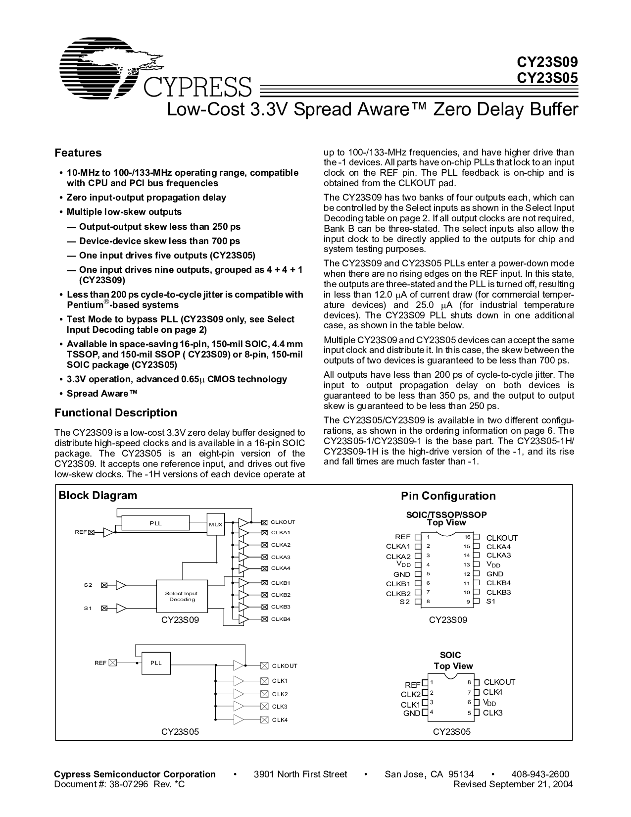 文件 #: 38-07296 rev. *c 修订 九月 21, 2004
