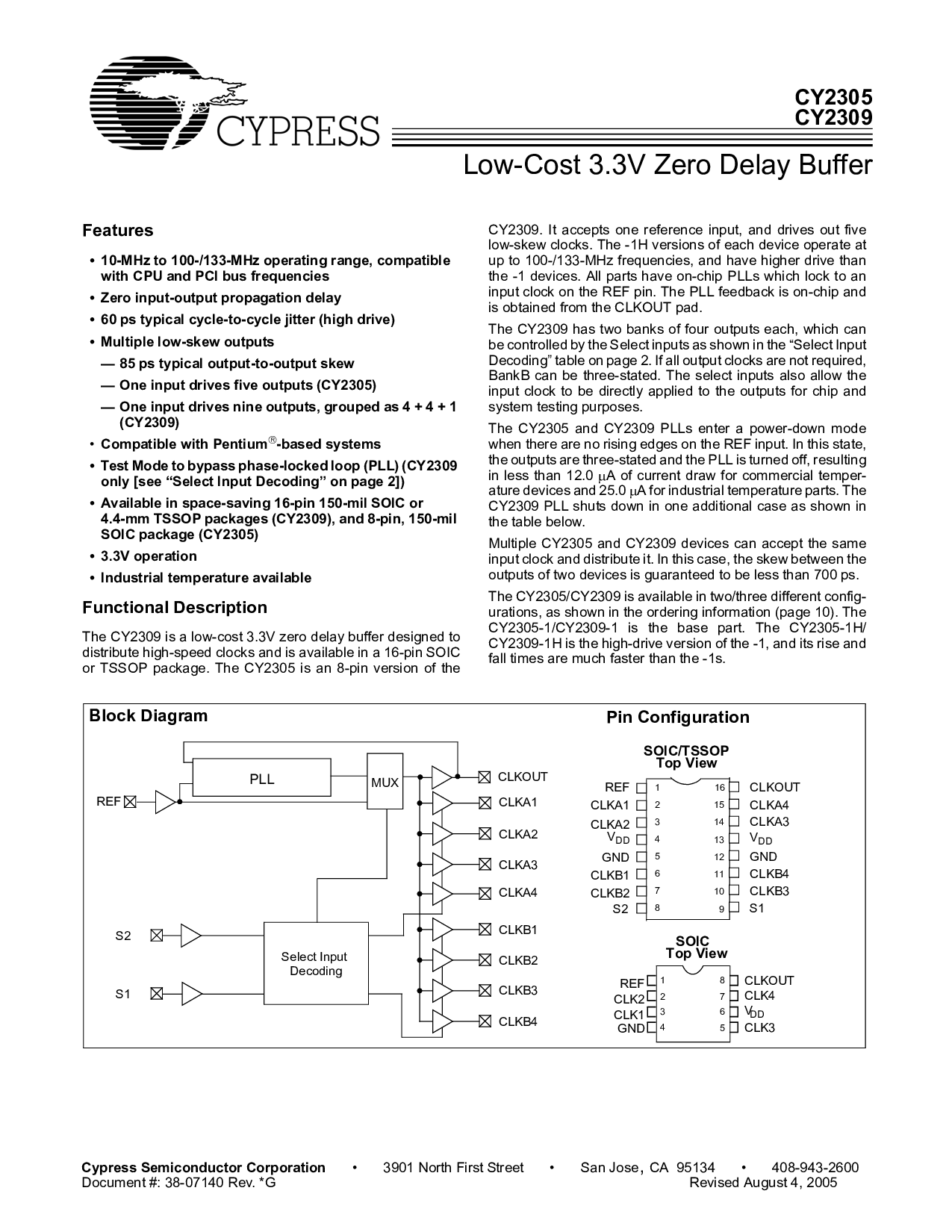 或 tssop 包装. 这 cy2305 是 一个 8-管脚 版本 的 这