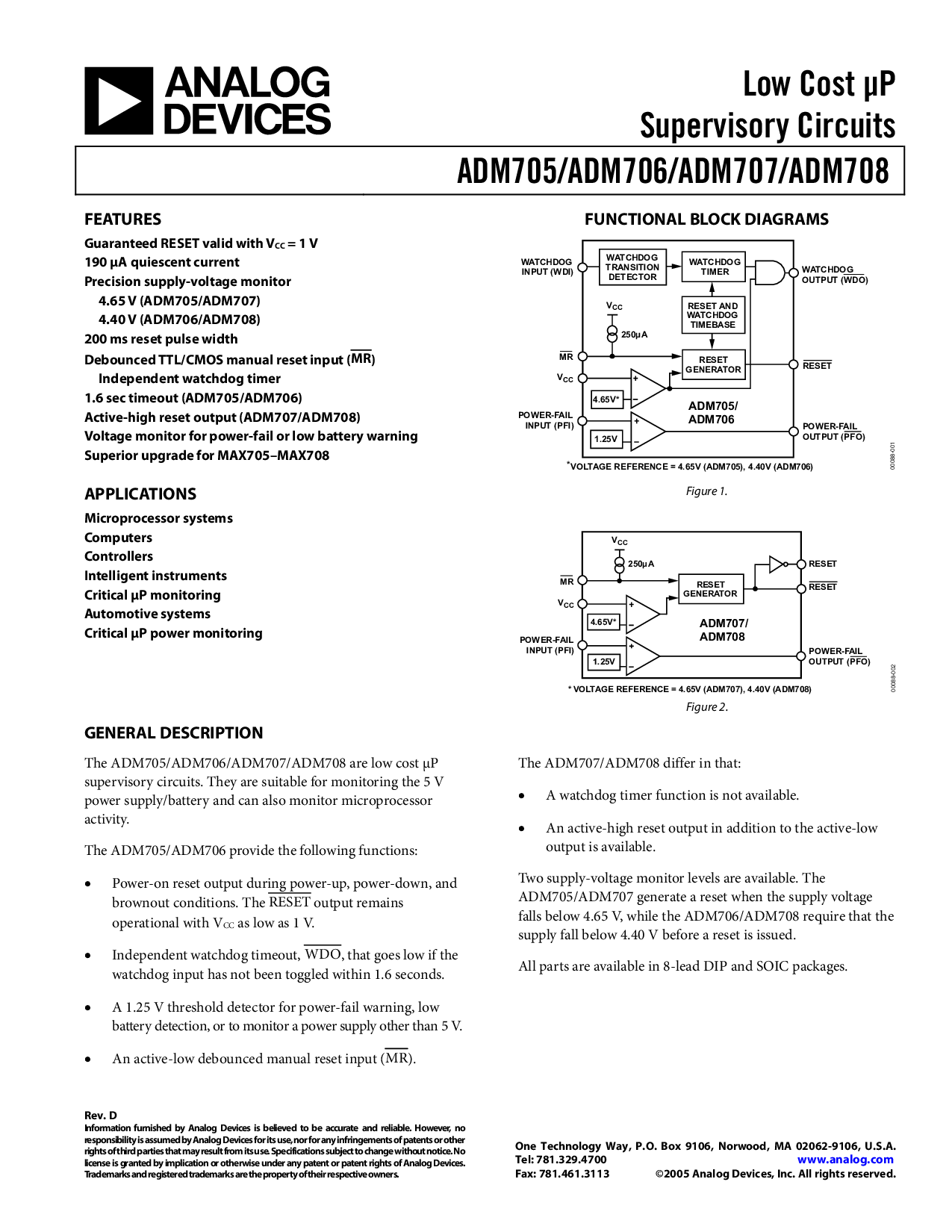 这 adm705/adm706/adm707/adm708 是 低 成本 µp