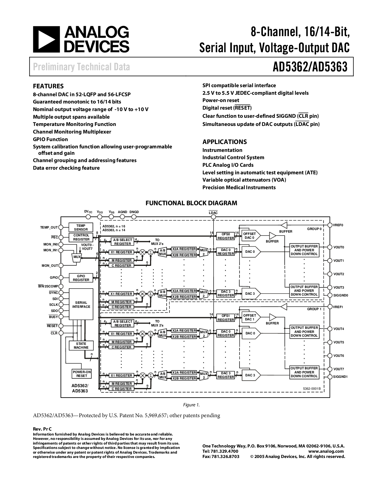 ad5362/ad5363—protected 由 u.s. 专利 否. 5,969,657; 其他 专利 待定