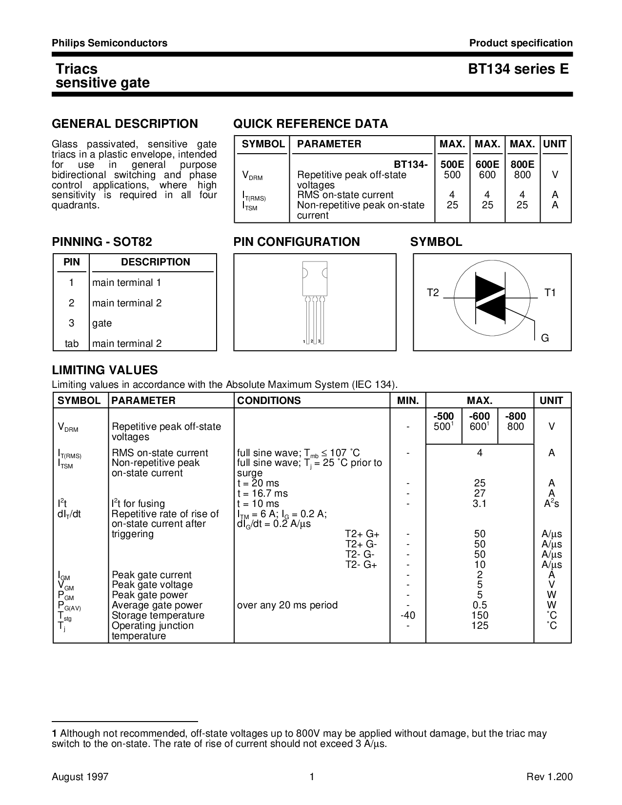 浏览型号BT134-600E的Datasheet PDF文件第4页