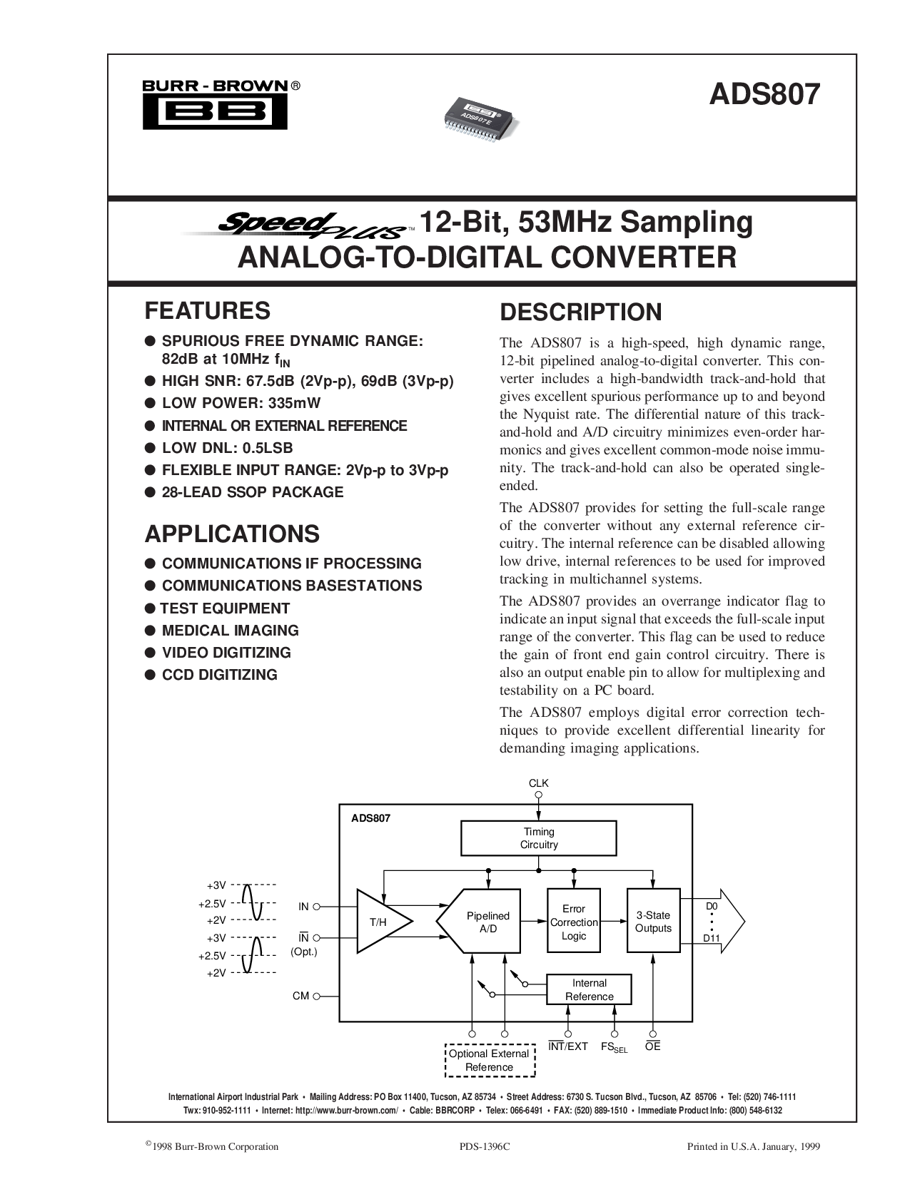 这 ads807 是 一个 高-速度, 高 动态 范围,