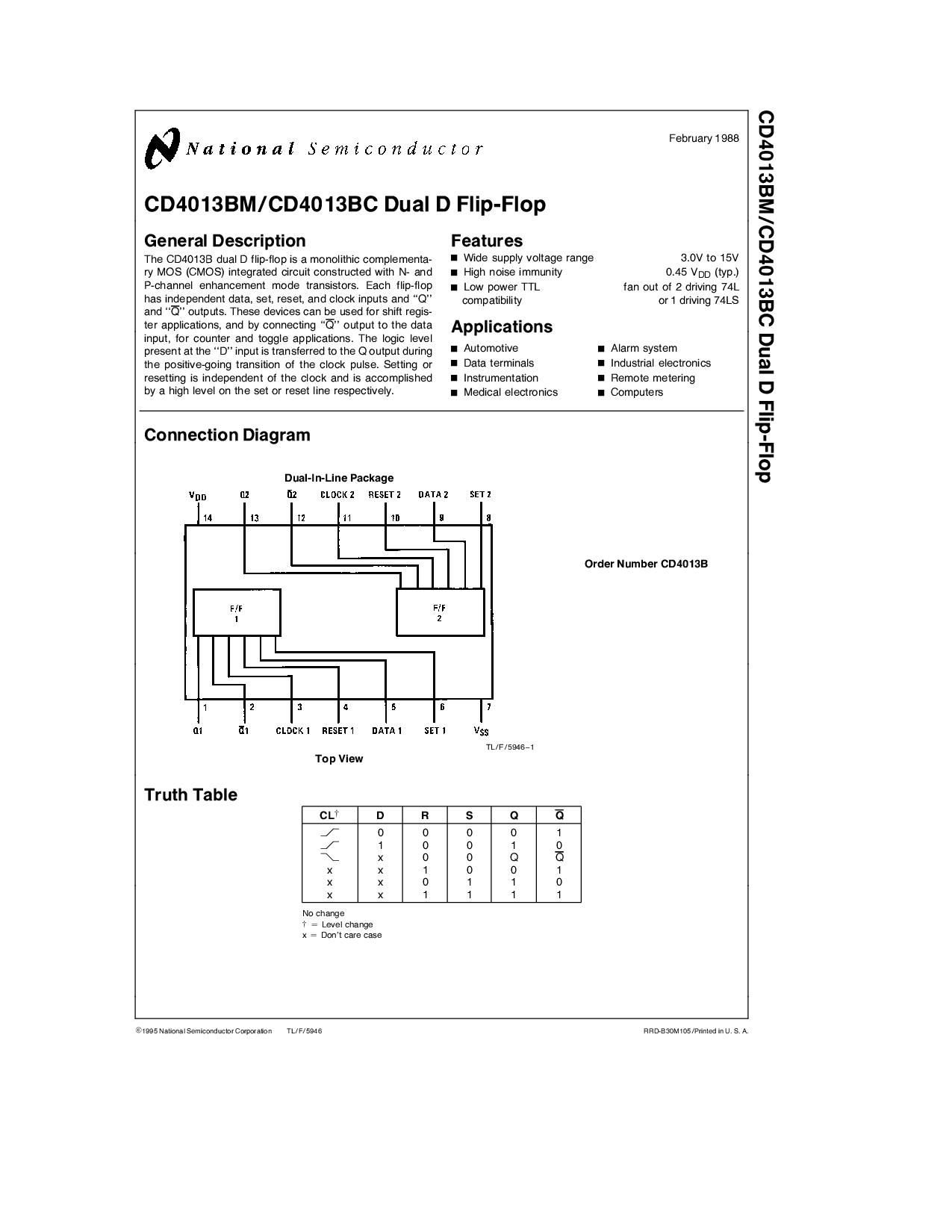 CD4013BMCD4013BC 双 d 触发器