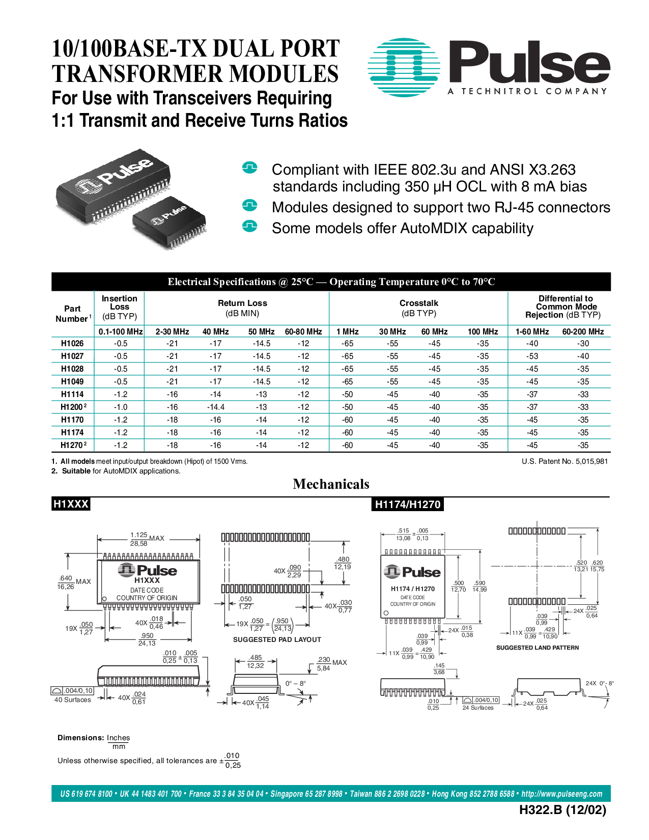 10/100Base-TX Dual Port Transfomer Modules for Use with Transceivers Requiring 1:1 TX & RX Turns Ratios (12/02)