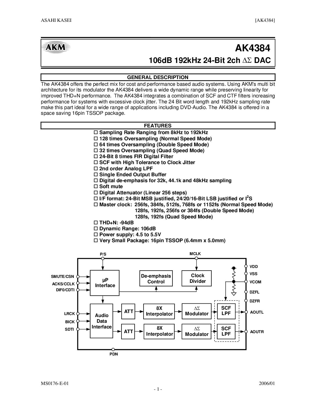 这 ak4384 优惠 这 完美 混合 用于 成本 和 业绩 基于 音频 系统. 使用 akm's 多 有点