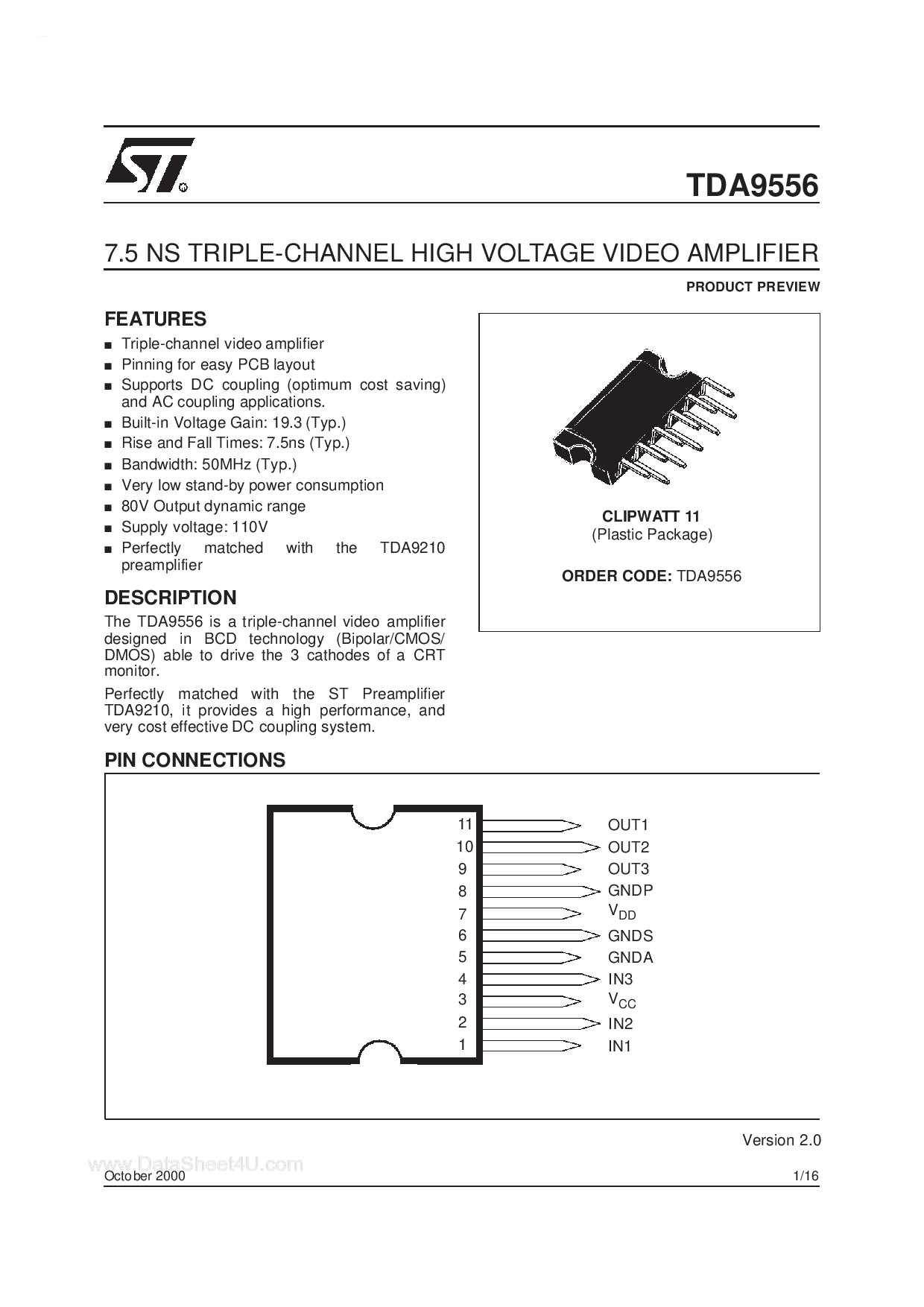 这 TDA9556 是 一个 三倍-频道 视频 放大器