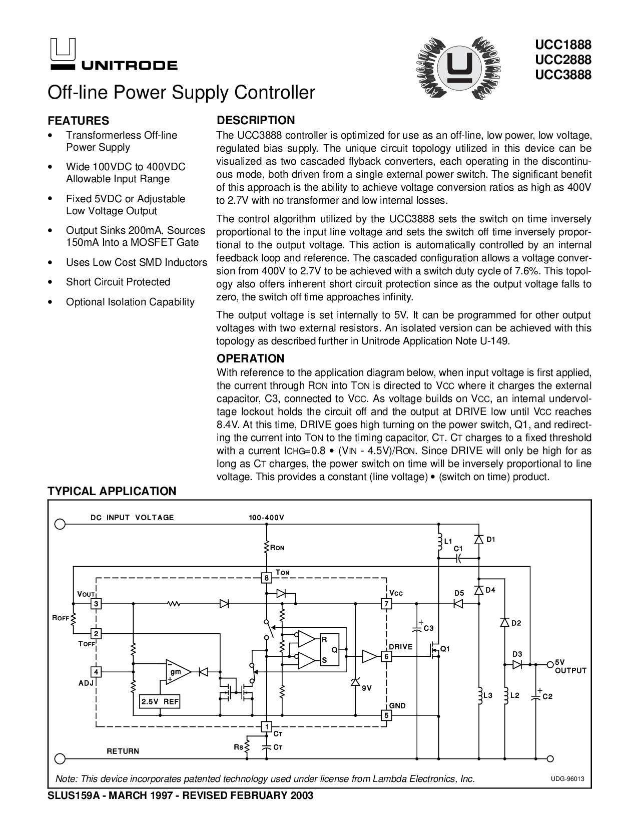 这 ucc3888 控制器 是 优化 用于 使用 作为 一个 关-线, 低 电源, 低 电压,