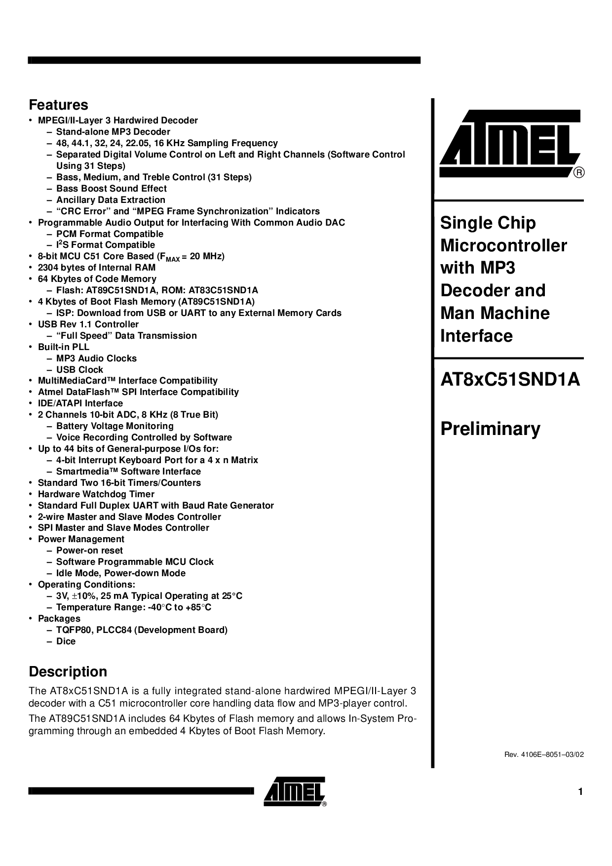 这 at8xc51snd1a 是 一个 完全 综合 单机 硬接线 mpegi/二-图层 3