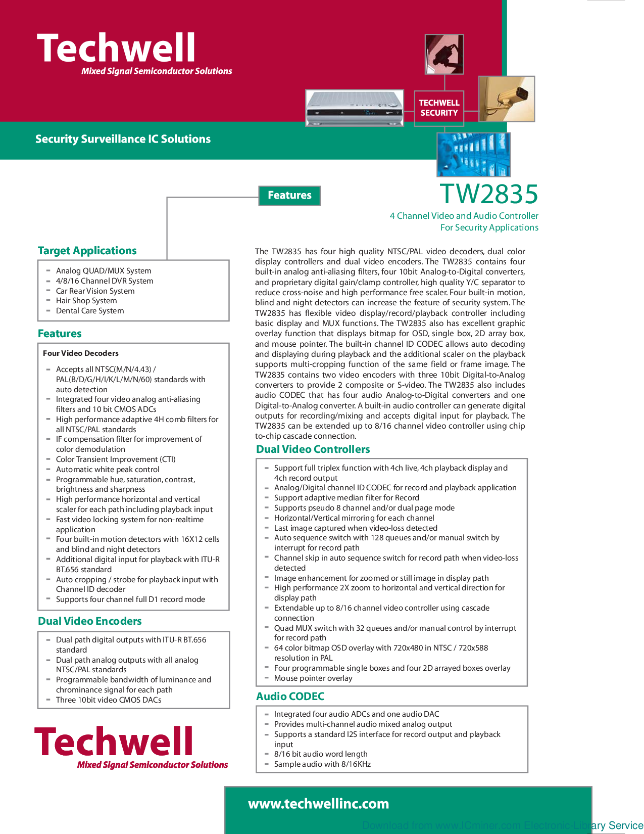 显示 控制器 和 双 视频 编码器. 这 TW2835 包含 四