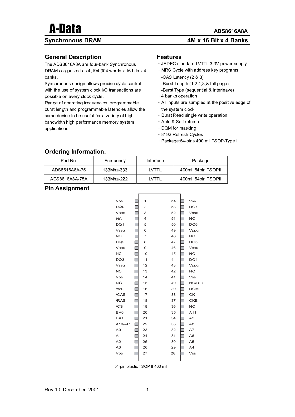 ads8616a8a-75a 133mhz-222 LVTTL 400mil 54pin tsopii
