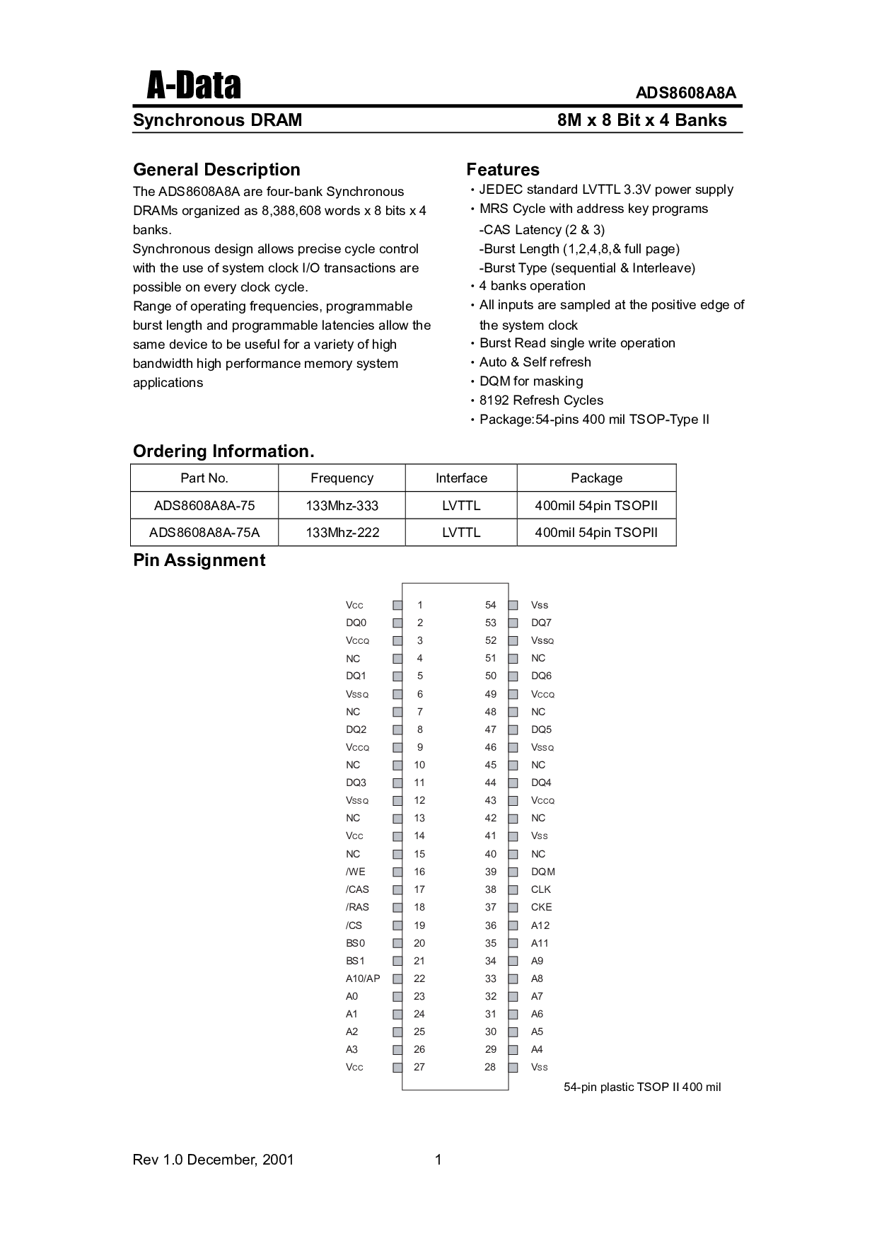 ads8608a8a-75a 133mhz-222 LVTTL 400mil 54pin tsopii
