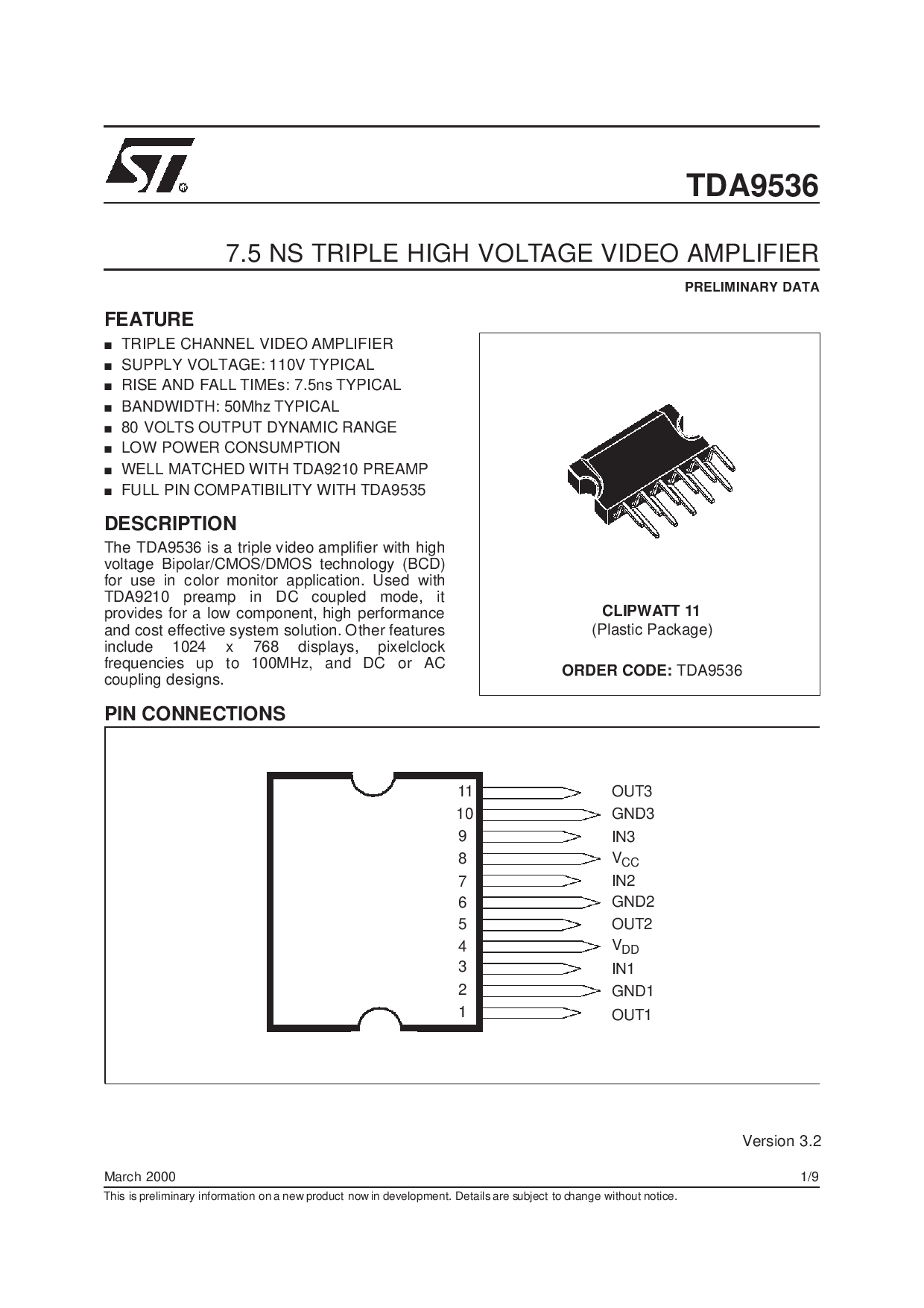 这 TDA9536 是 一个 三倍 视频 放大器 与 高