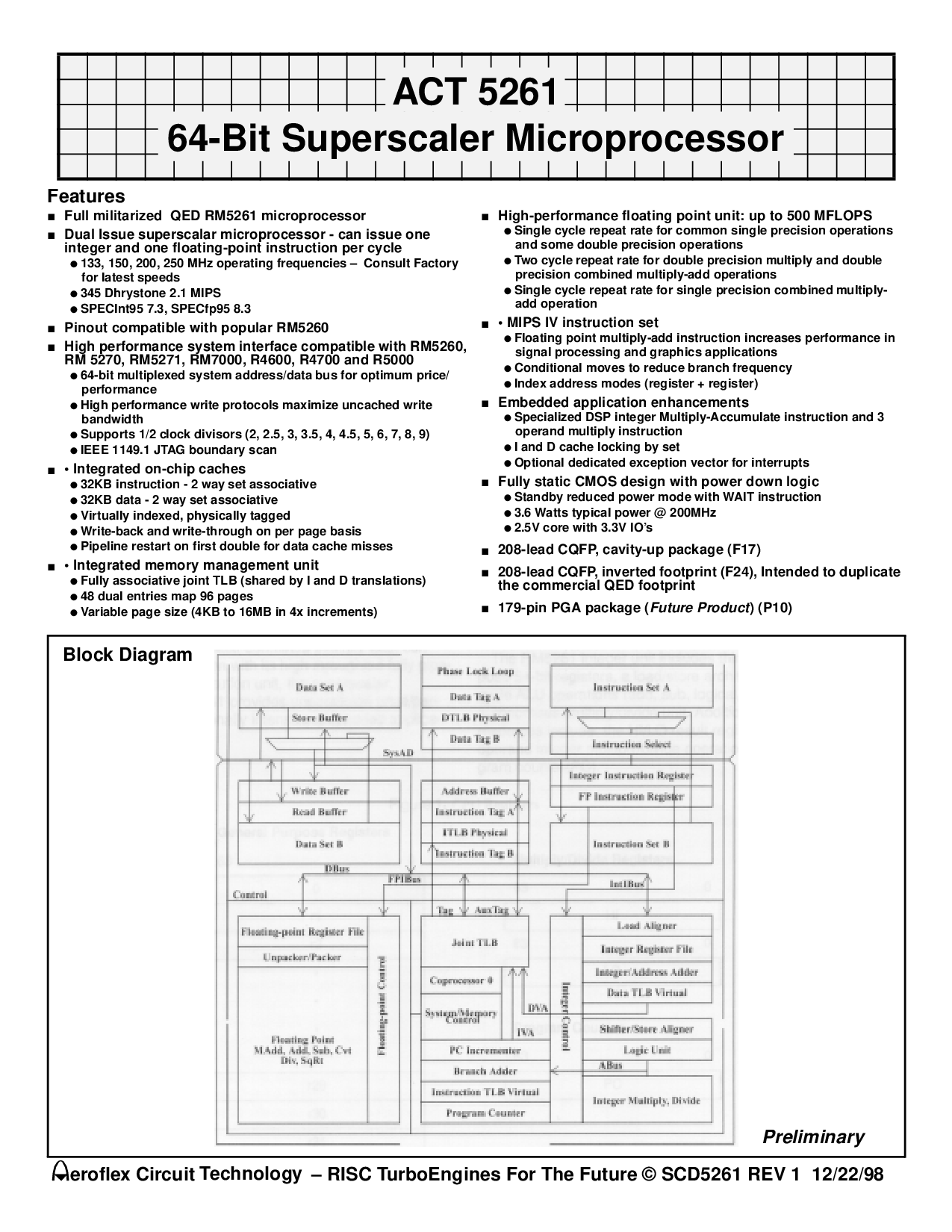 ACT 5261 64-Bit Superscaler Microprocessor