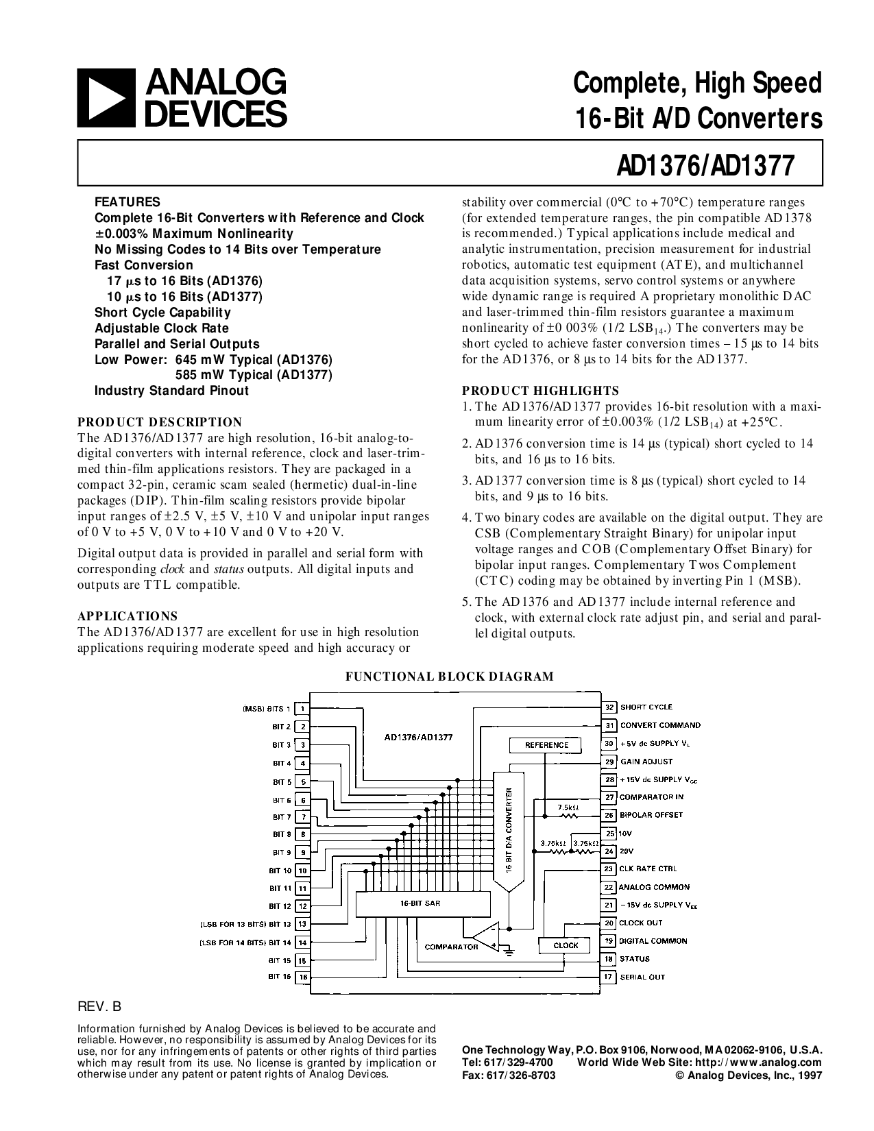 1. 这 ad1376/ad1377 提供 16-有点 分辨率 与 一个 maxi-