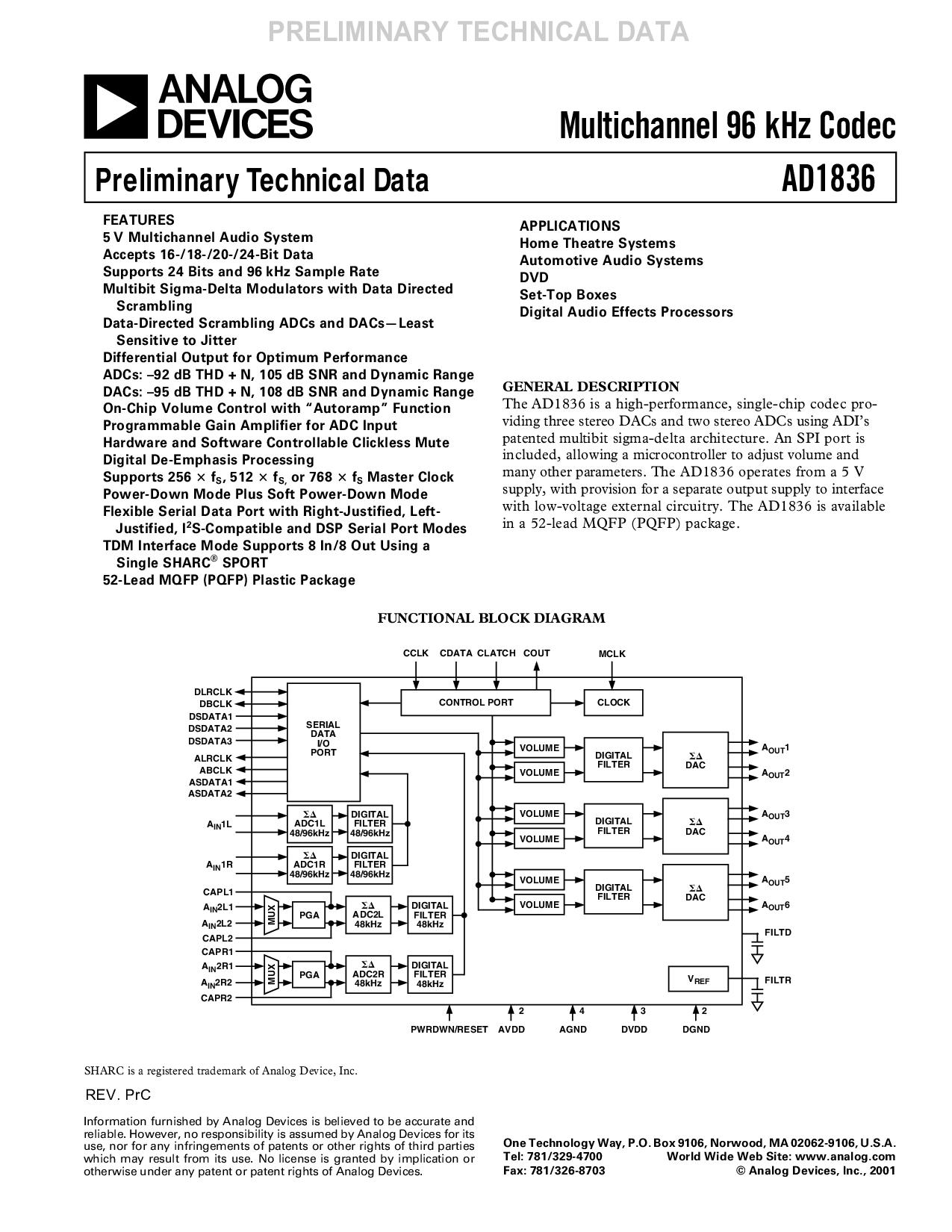 许多 其他 参数. 这ad1836 操作 从 一个 5 v